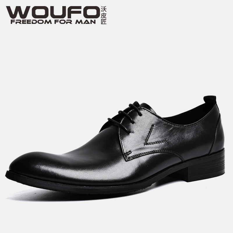 英伦风真皮尖头皮鞋男头层牛皮系带简约商务正装德比鞋流行男鞋