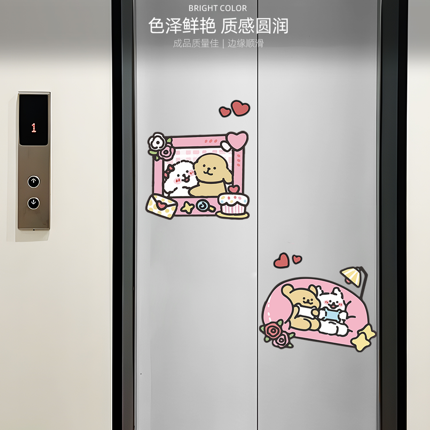 线条小狗电梯门防水装饰贴纸