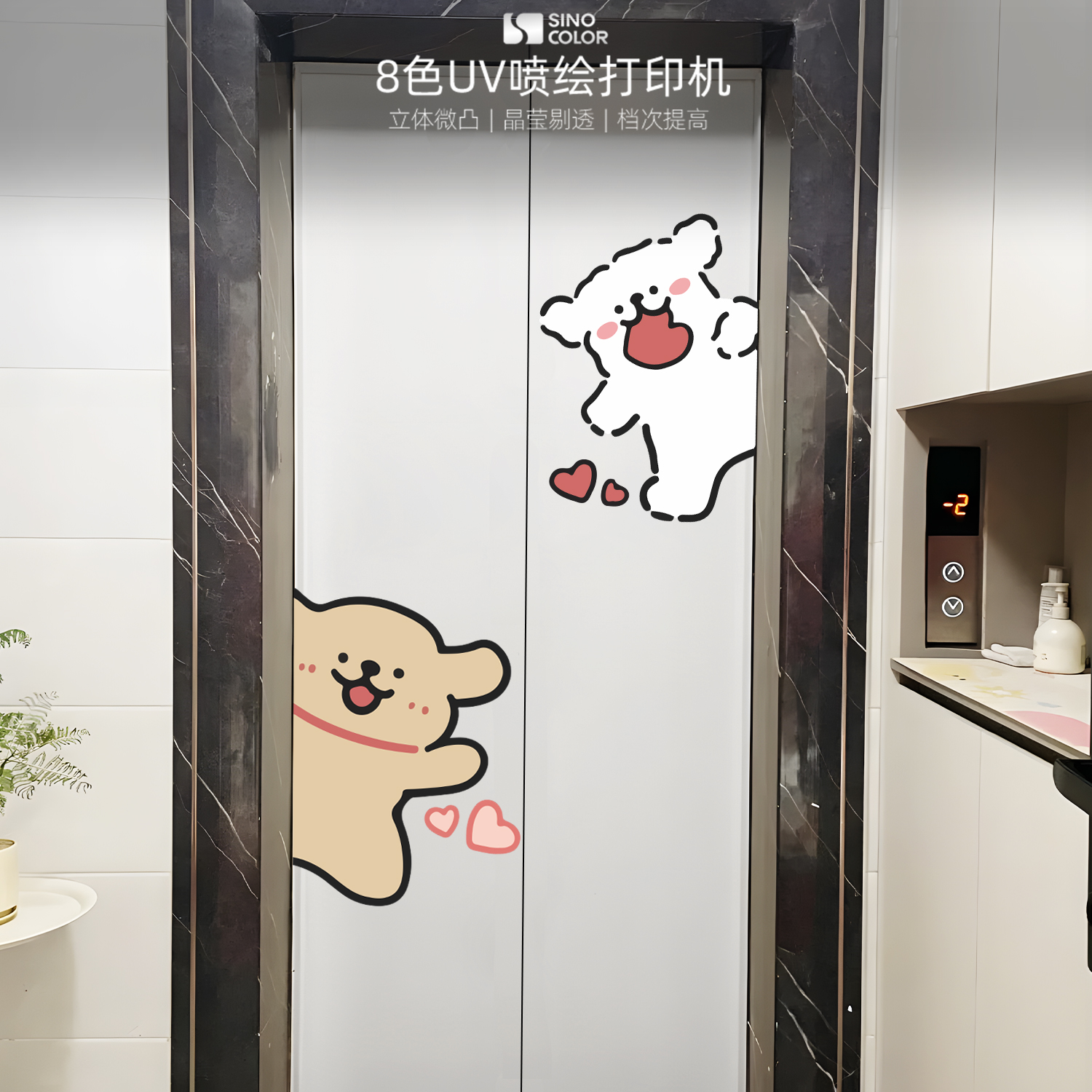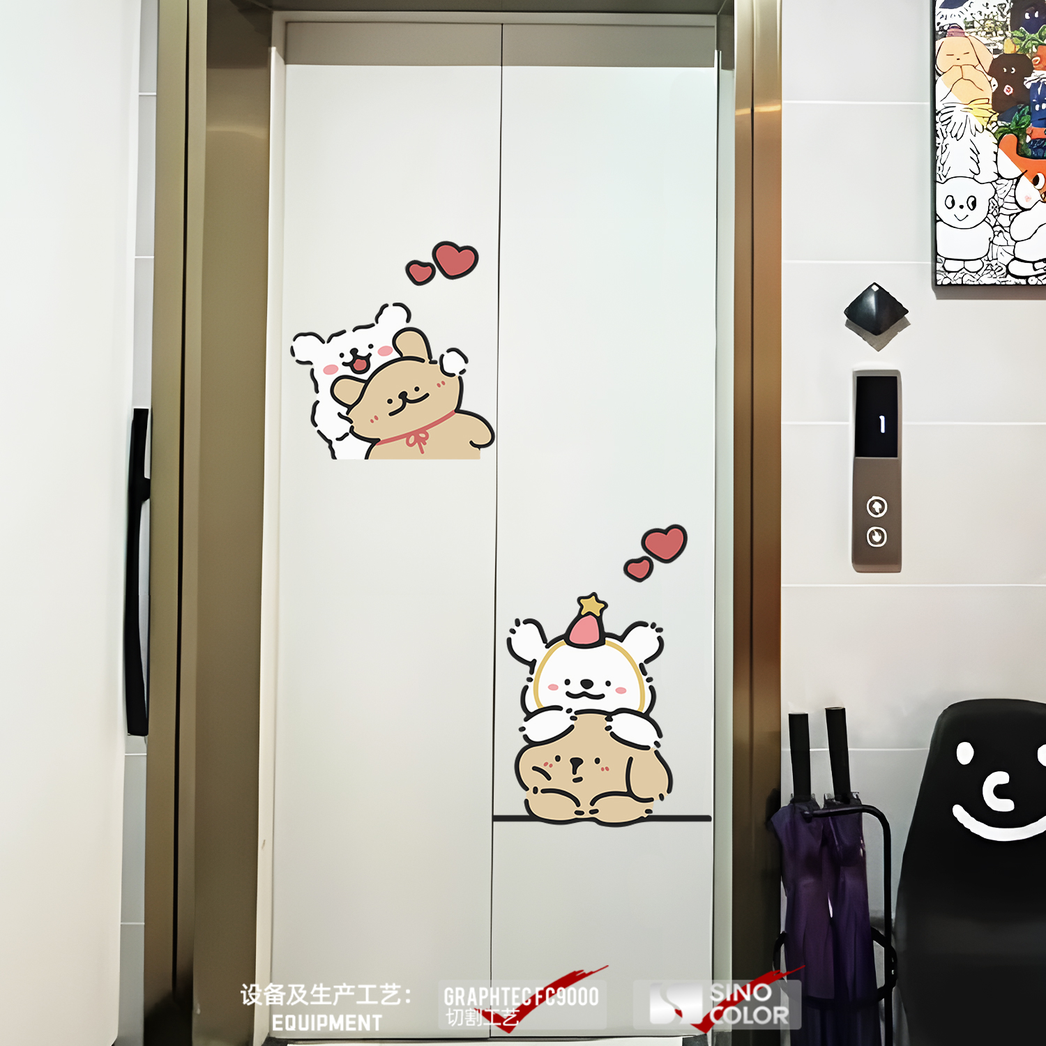 线条小狗商场电影院入户电梯门浴室厨房推拉玻璃门防水装饰遮丑贴