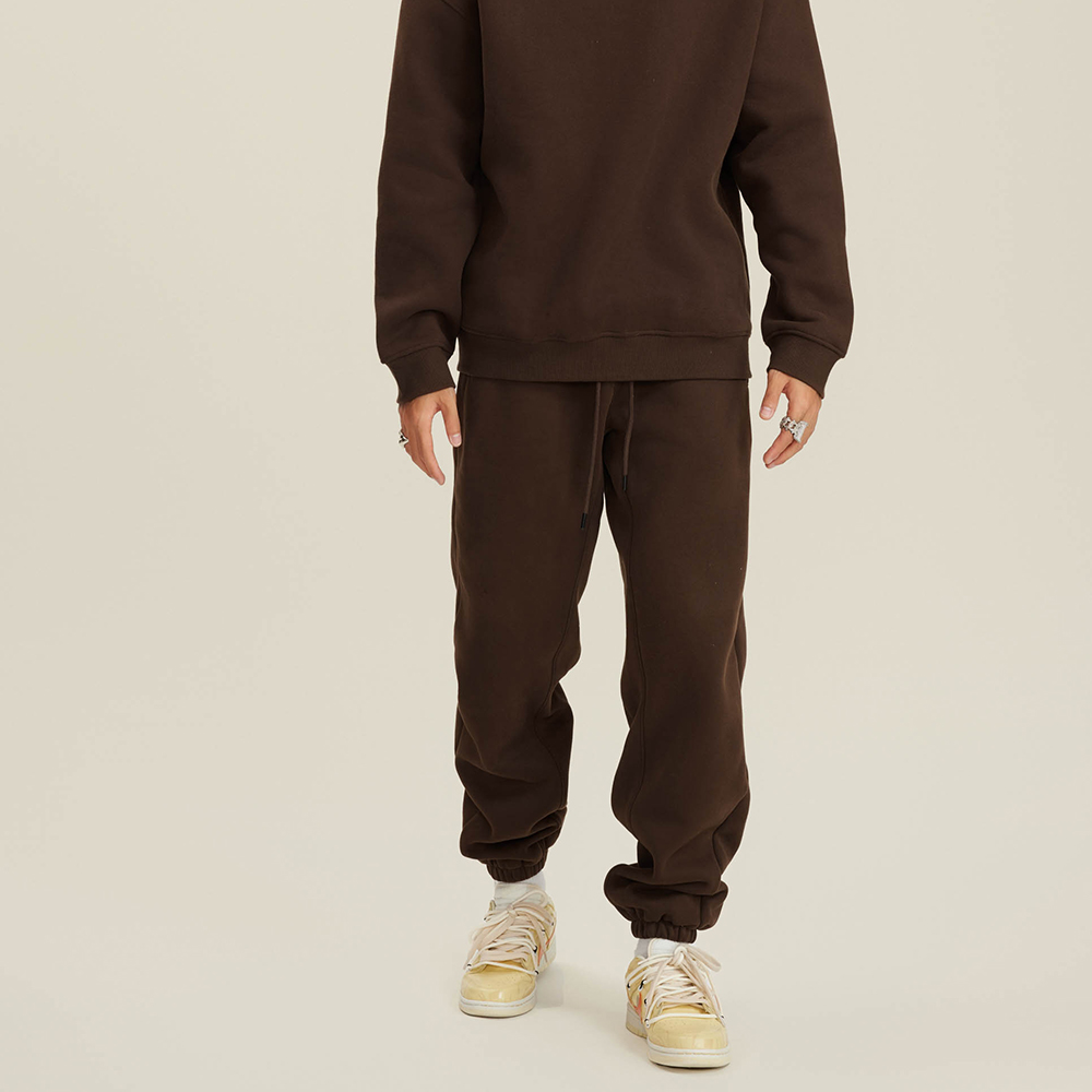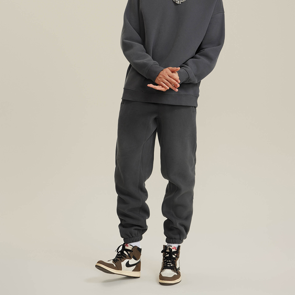 美式潮牌男纯色卫裤秋冬加绒加厚宽松直筒束脚裤情侣男潮休闲裤