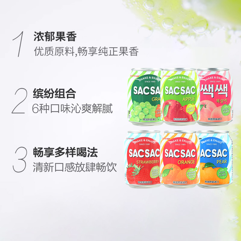 【自营】韩国进口乐天LOTTE网红果汁饮料葡萄汁礼盒装多口味0脂肪