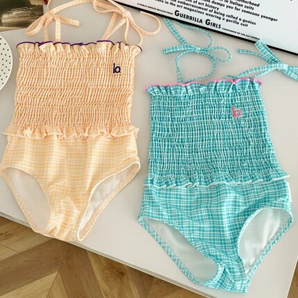 ins女童泳衣连体吊带儿童游泳衣宝宝小公主可爱网红度假游泳套装