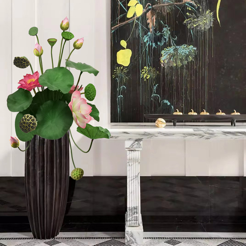 仿真莲蓬荷花荷叶莲花中式禅意佛供假花客厅餐桌婚庆花艺装饰摆件