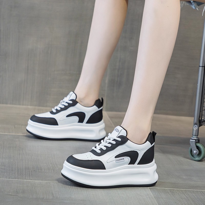 小个子内增高小白鞋女2025新款爆款真皮厚底百搭休闲板鞋黑白鞋子