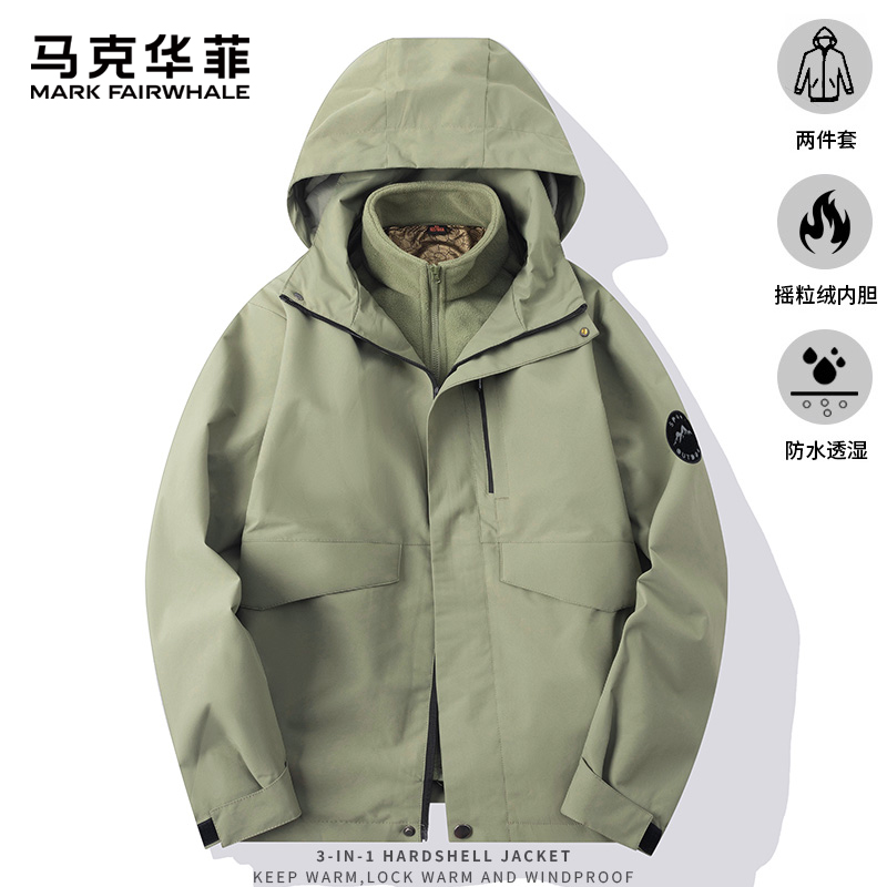 马克华菲冲锋外套男士三合一可拆卸两件套防水防风登山服连帽夹克