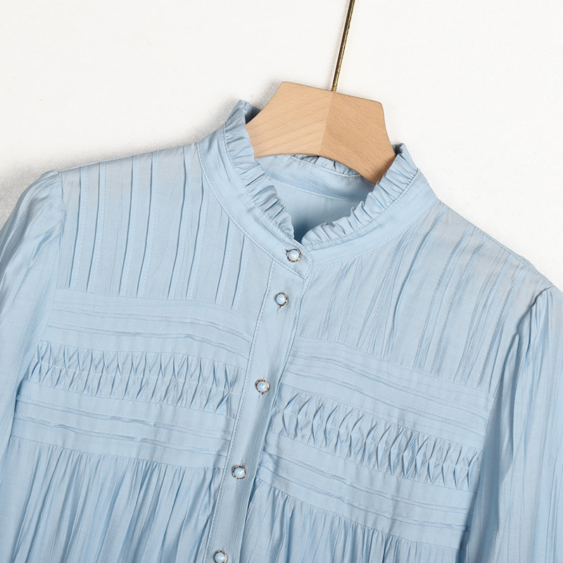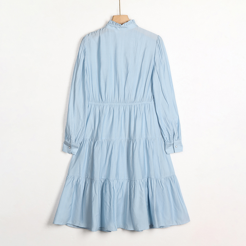 三C2025春季女装法式复古荷叶边长袖连衣裙女宽松显瘦中长裙L39