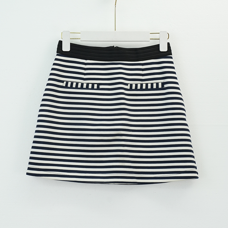 时尚条纹高腰半身短裙
