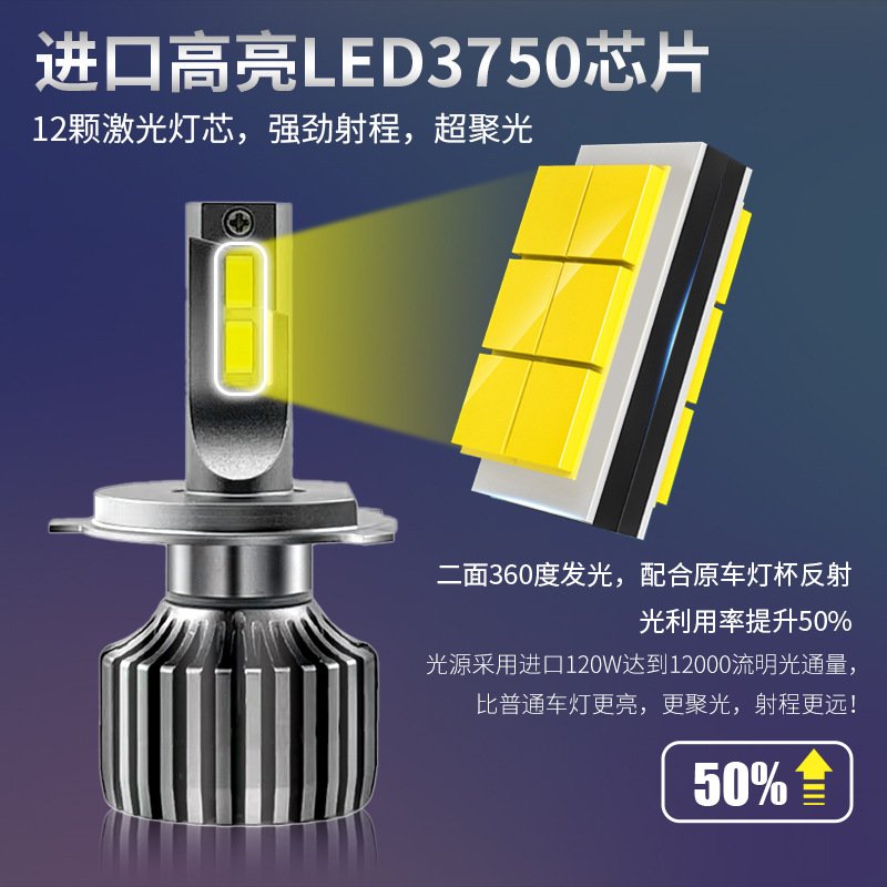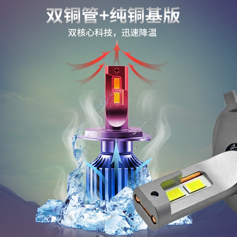 汽车led大灯双铜管超亮前照灯h7h4大功率9005远近一体厂家直销H11