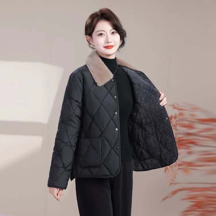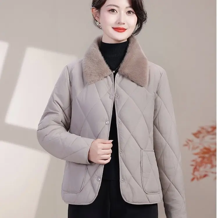 冬季翻毛领加绒加厚短款中老年女装妈妈气质百搭防寒小棉服百搭