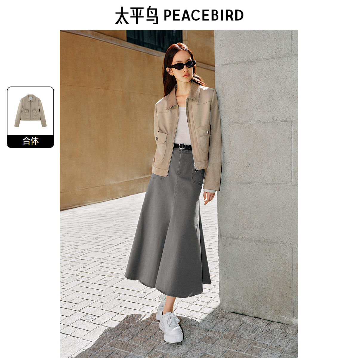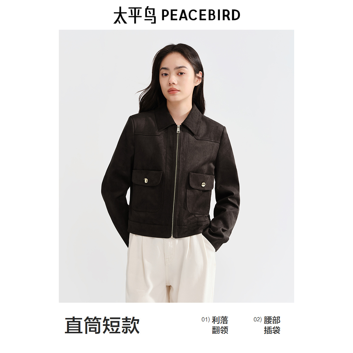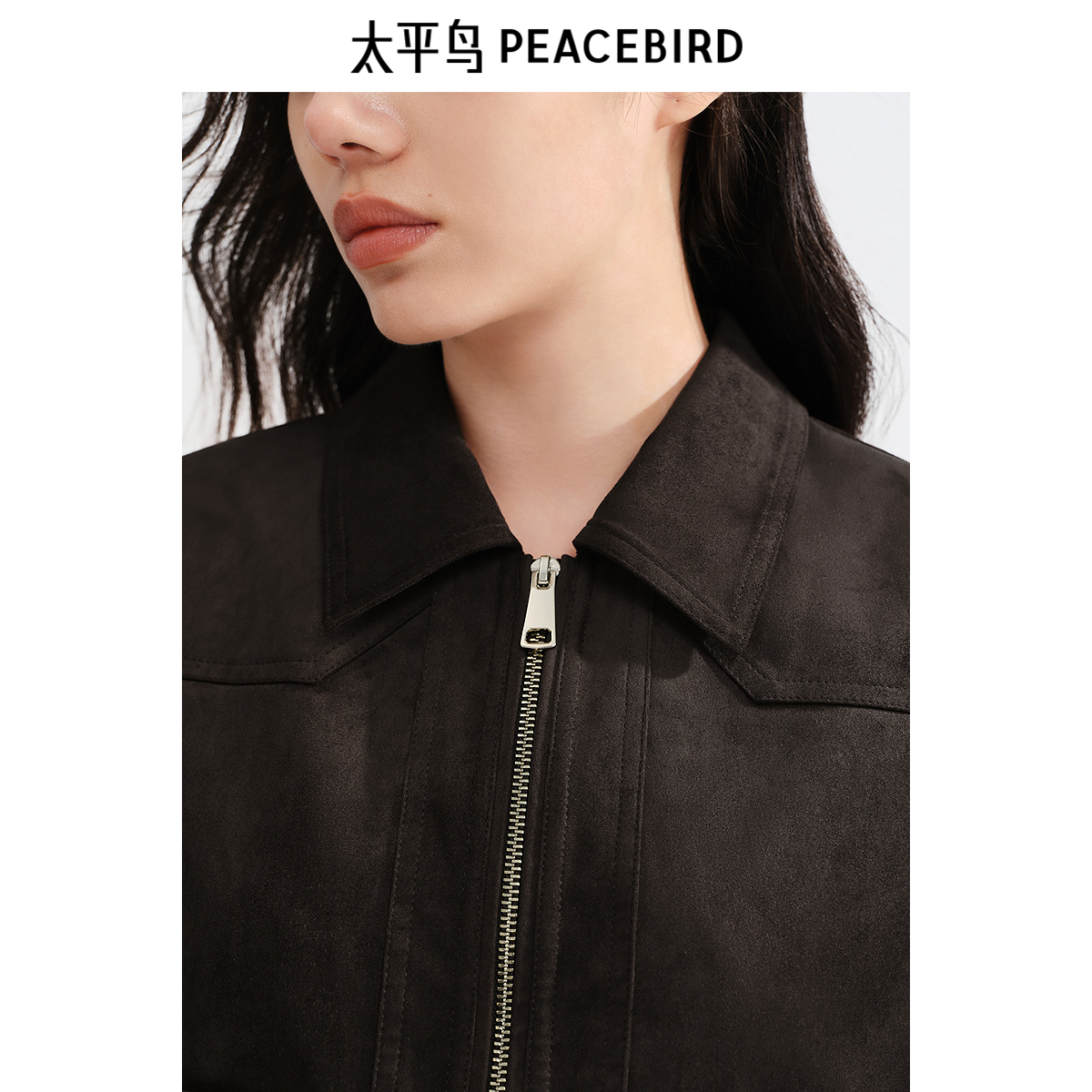太平鸟仿麂皮绒翻领美式外套女休闲新款秋季外套品质短款夹克