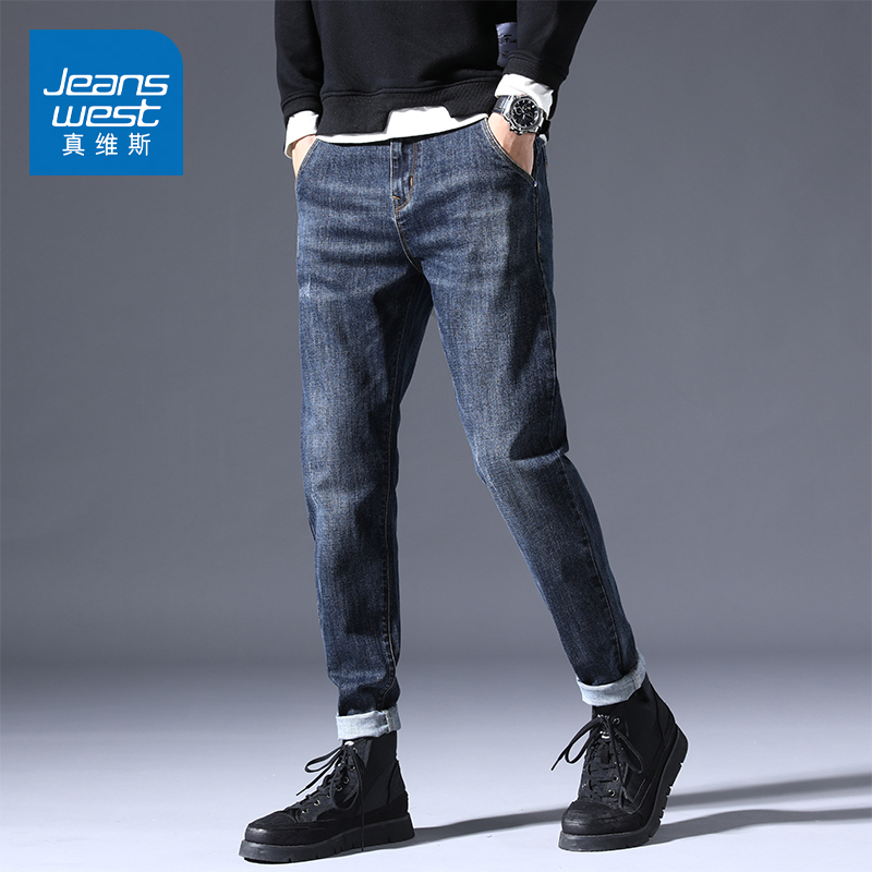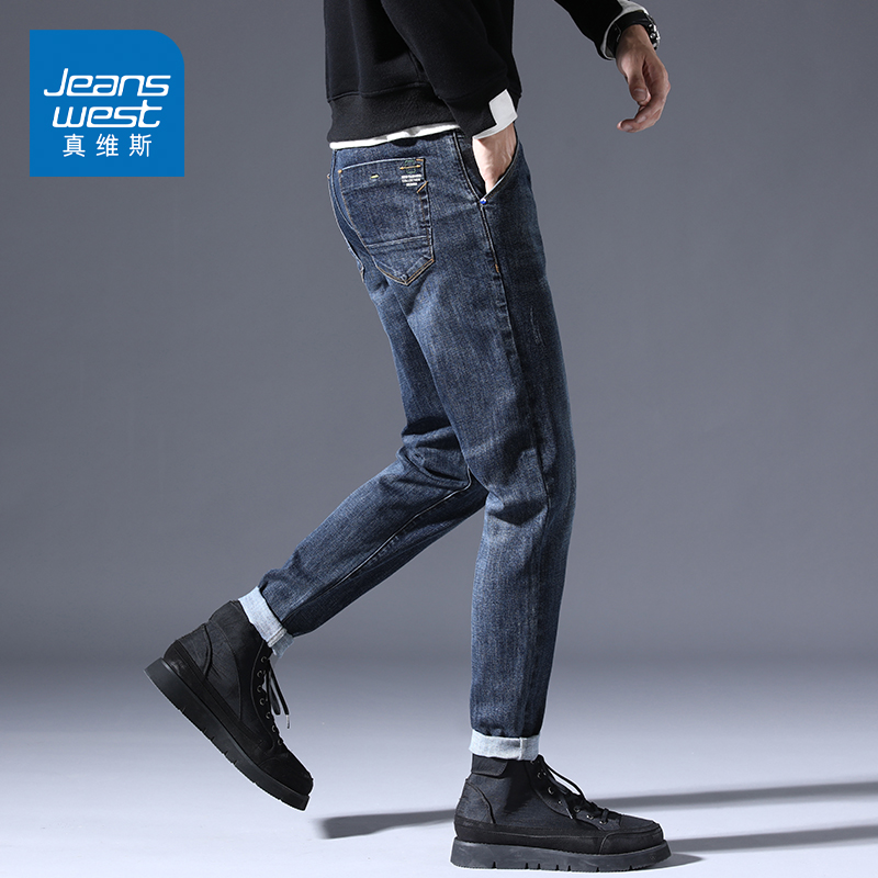 KZ真维斯男士高端牛仔长裤修身小脚休闲男裤子2025新款秋季秋冬款