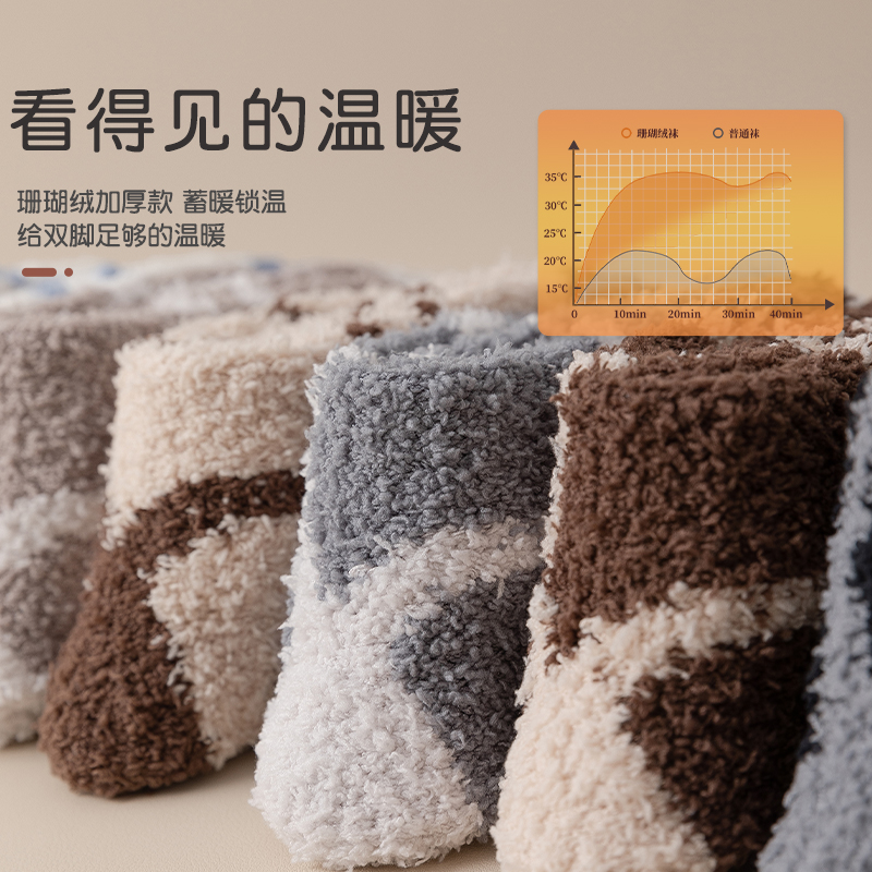 珊瑚绒袜子男冬季加厚保暖中筒袜居家地板袜男士睡眠长筒袜秋冬