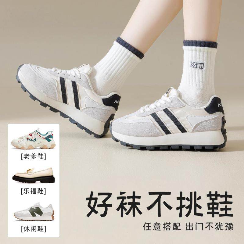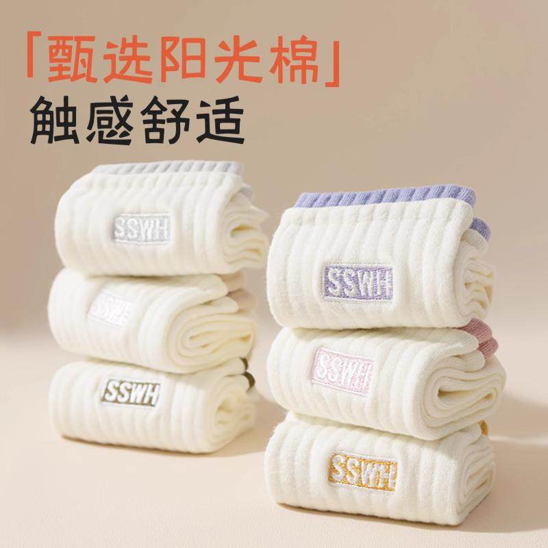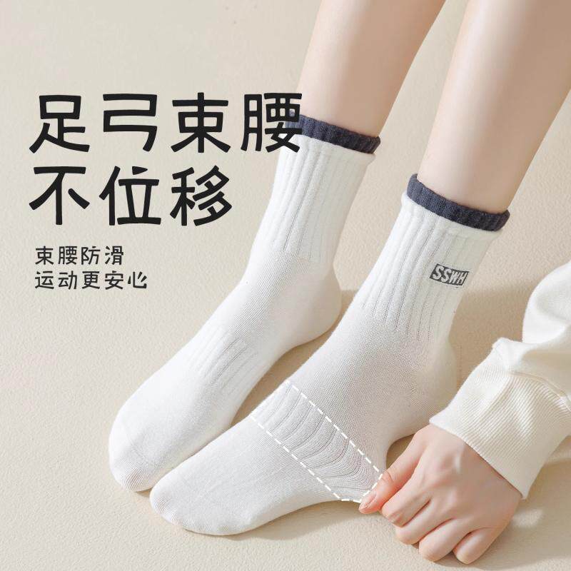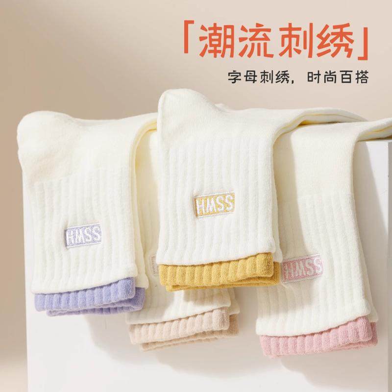 猫人袜子女春秋款纯棉刺绣无骨袜吸汗防滑运动袜抗起球秋冬中筒袜