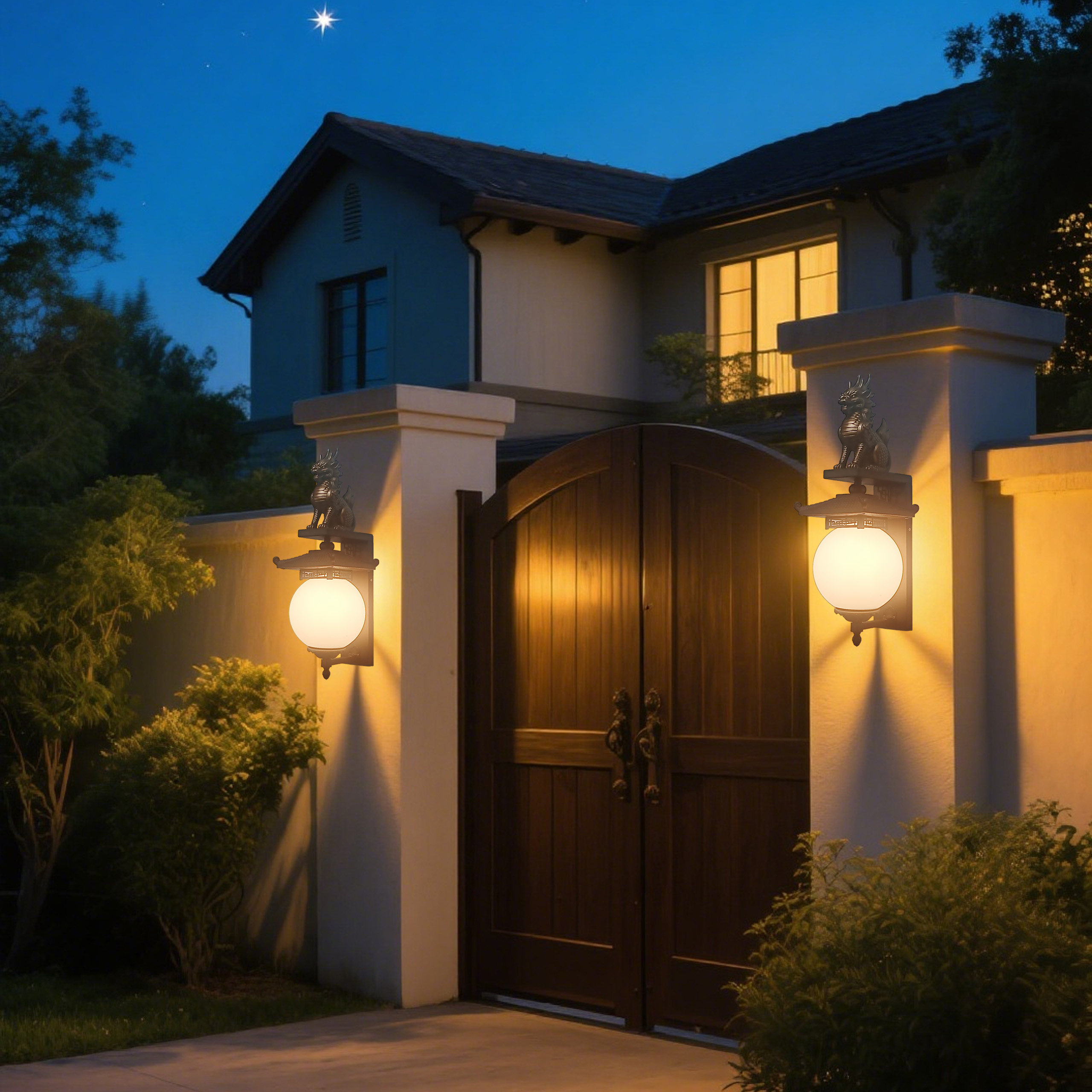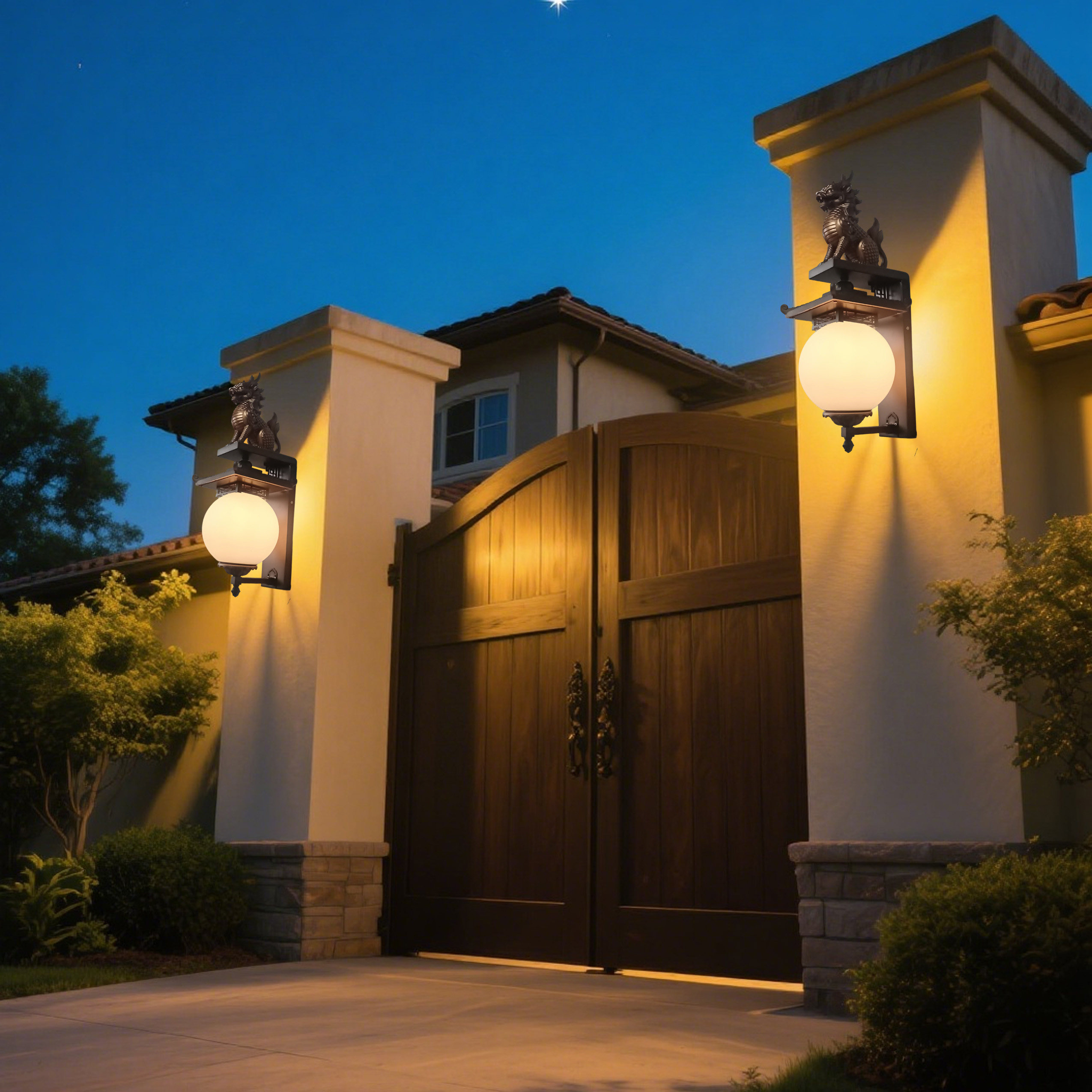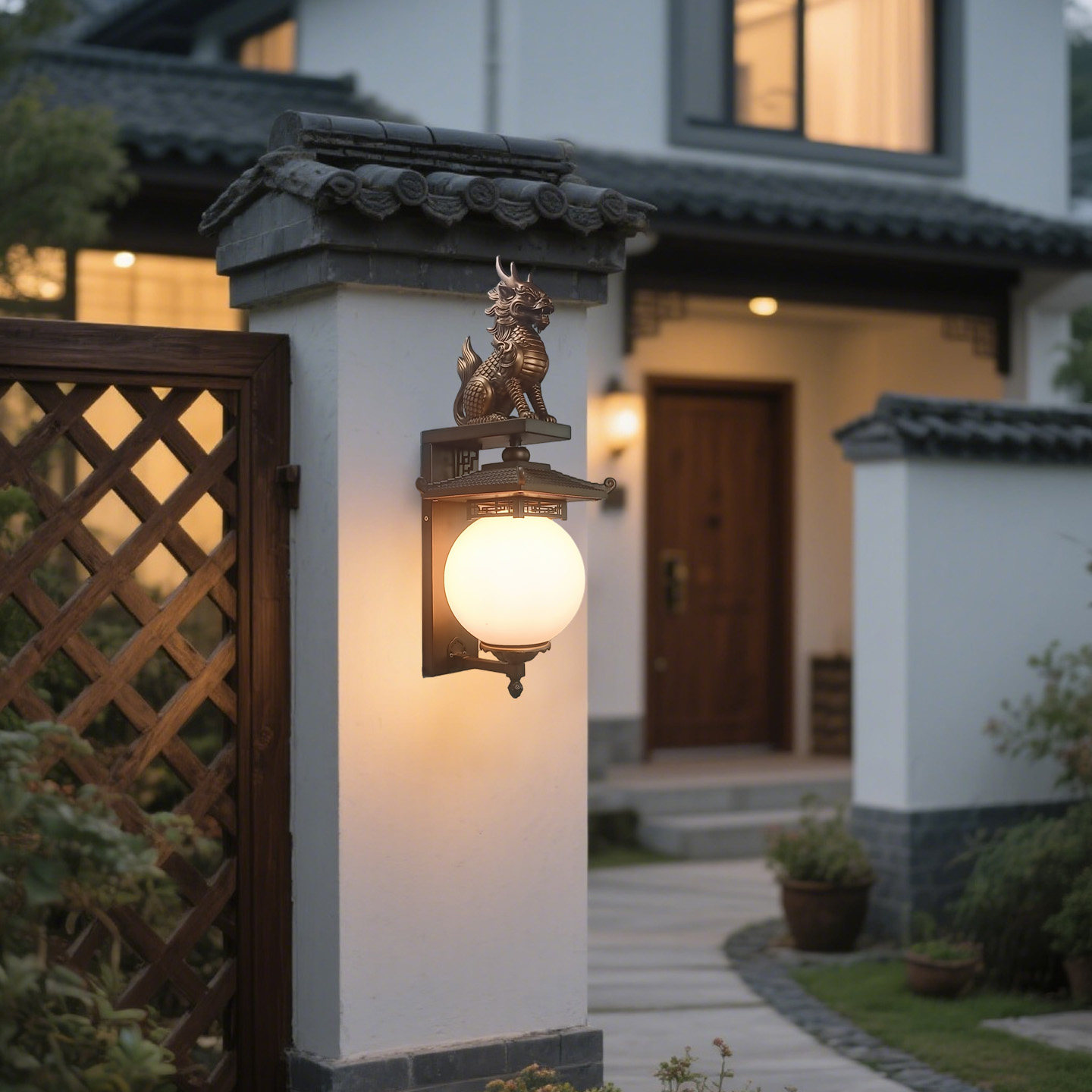 新品户外别墅大门后院防水壁灯室外庭院围墙门柱子仿古禅意风壁灯