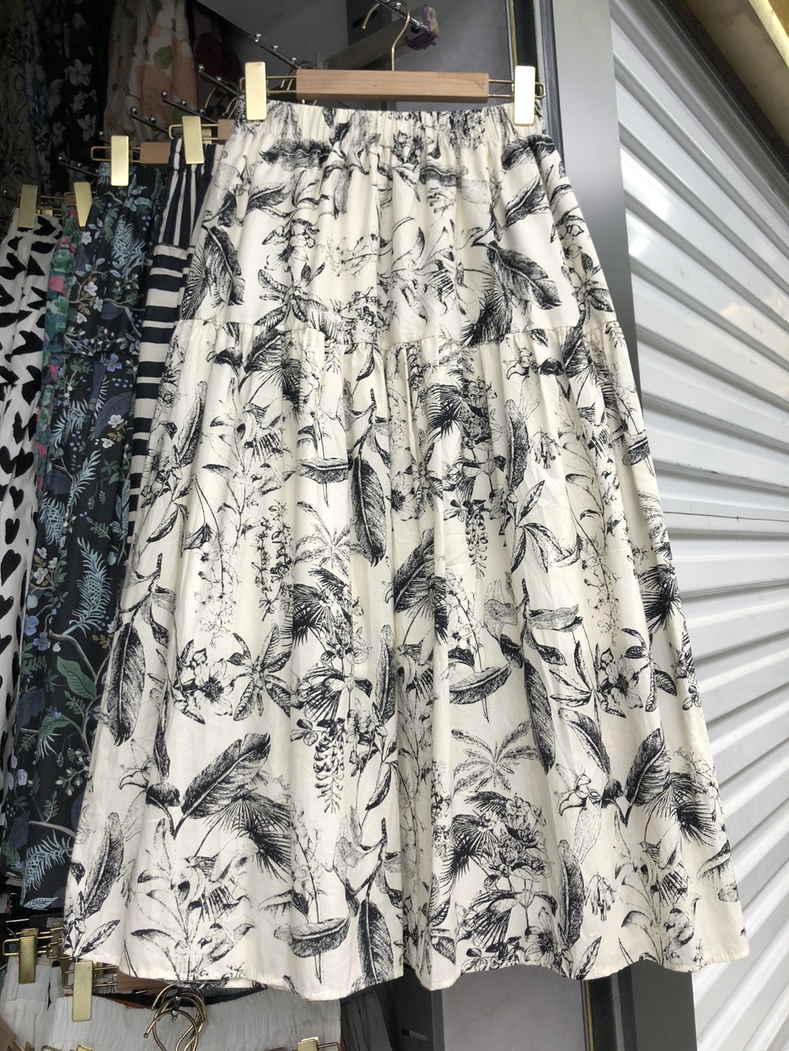 复古水墨碎花半身裙女2025年夏季新款法式高腰显瘦气质中长款伞裙