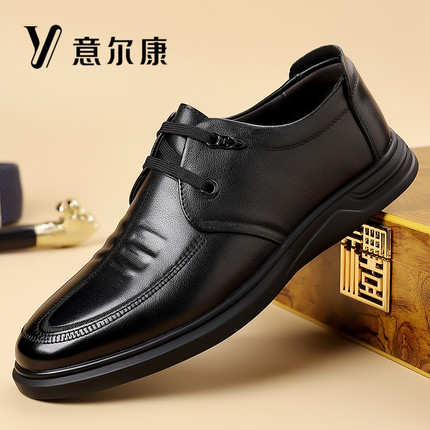 意尔康男鞋真皮透气商务休闲皮鞋男士头层牛皮软底防滑正装潮鞋子