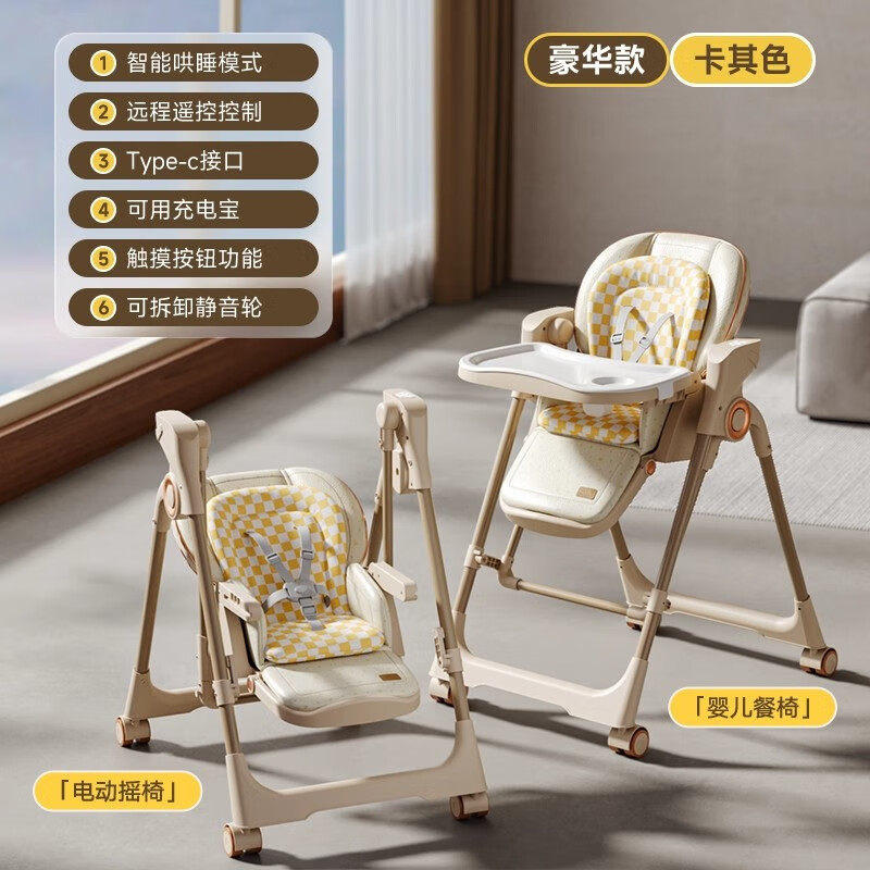新生儿哄娃神器多功能婴儿床智能哄睡可折叠收纳宝宝电动摇摇餐椅