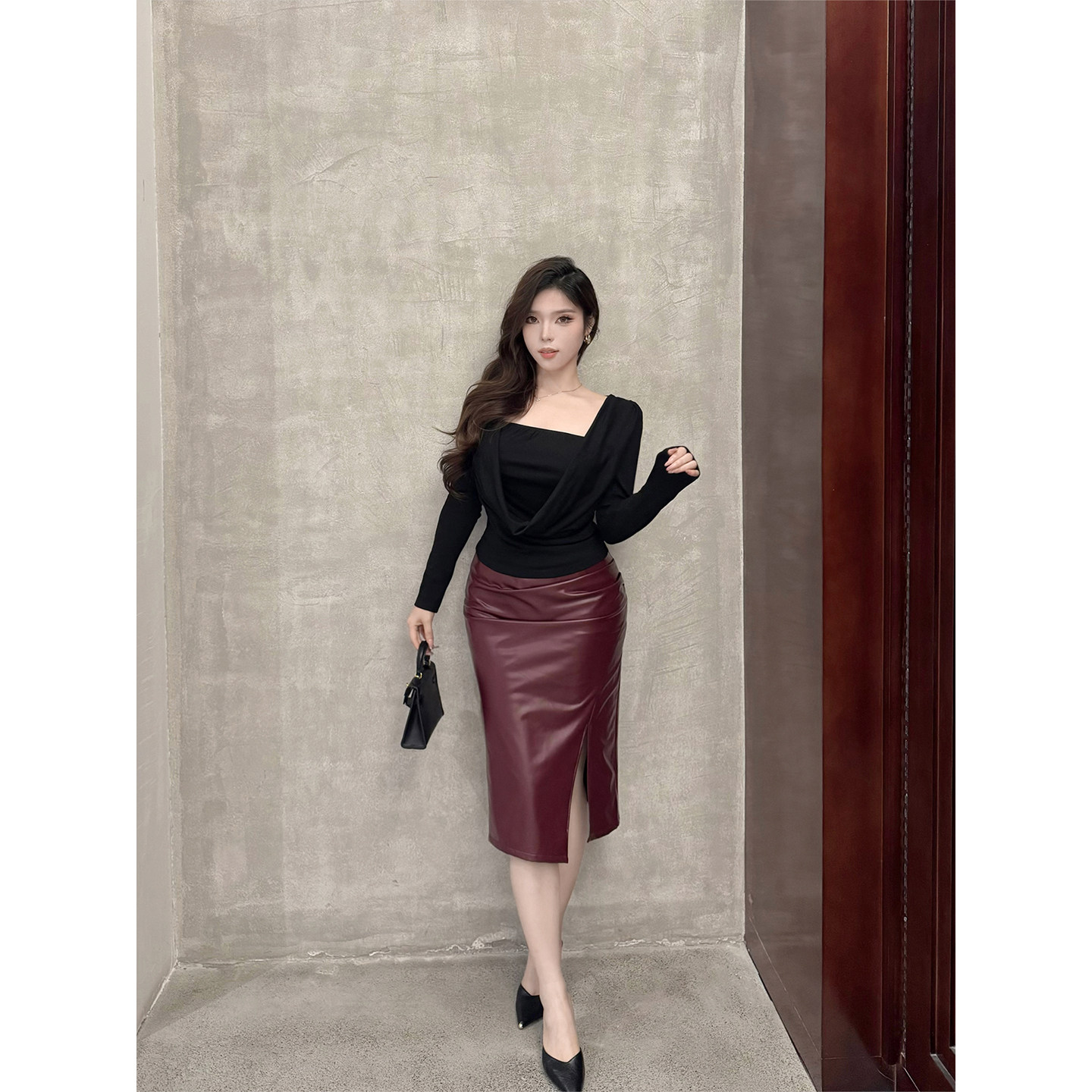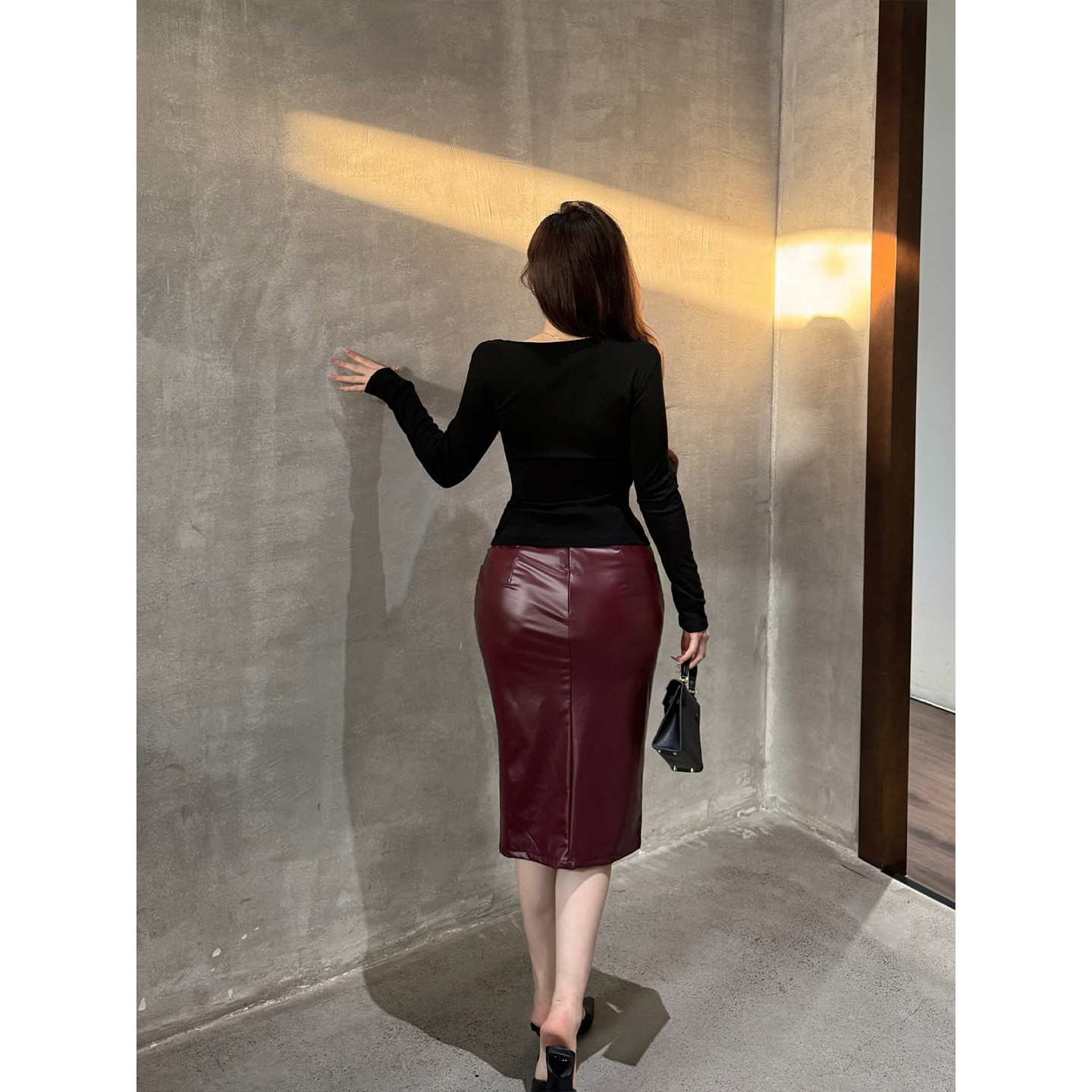 Babes【酒杯裙】大码OL复古高腰气质修身显瘦下摆开衩长款半身裙
