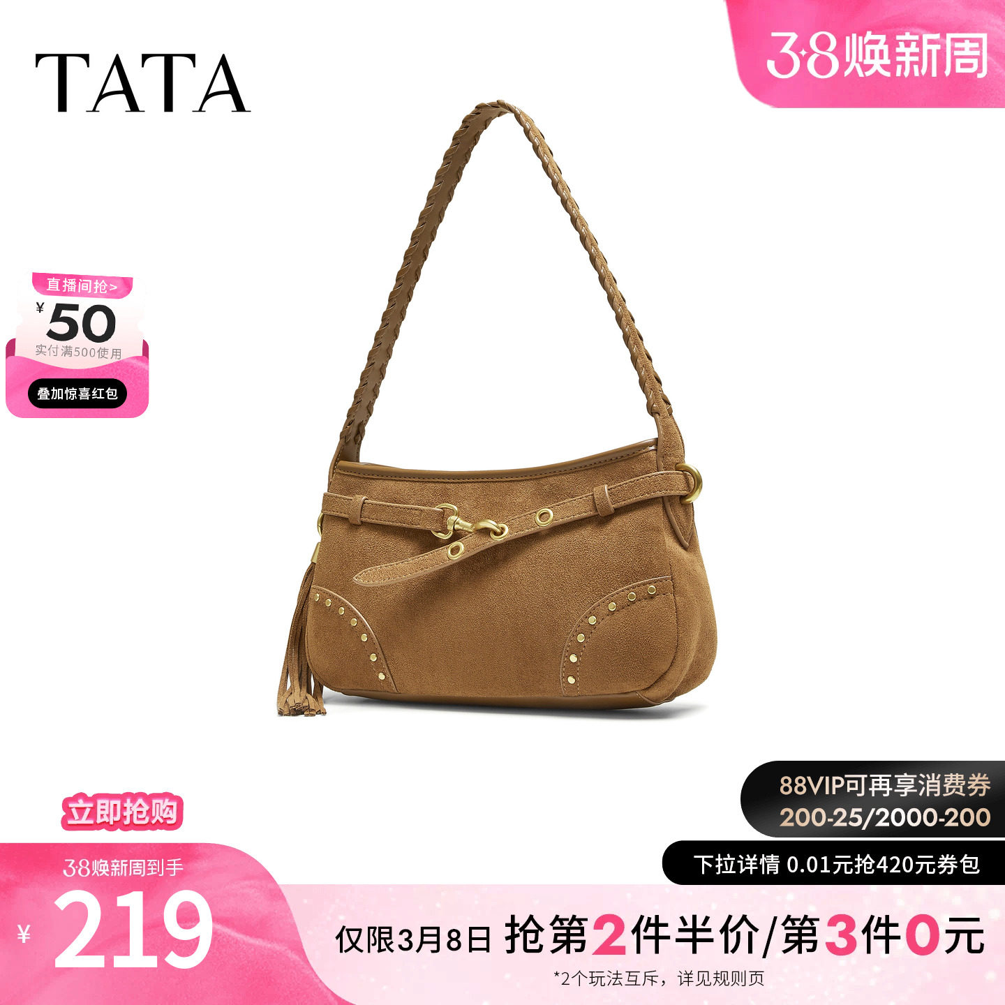 TATA他她绒面包包冬商场同款轻奢质感腋下包高级感新款X3489CX5