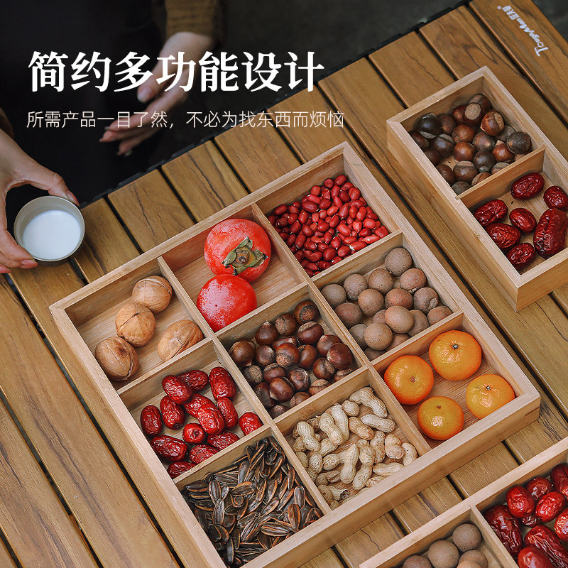 围炉煮茶四格干果坚果盘收纳盒九宫格茶点心零食摆放木质分格托盘
