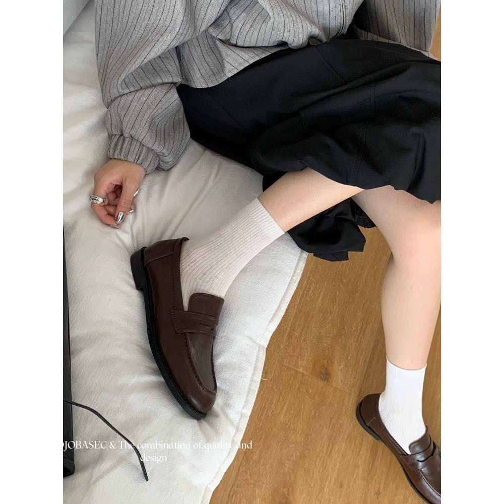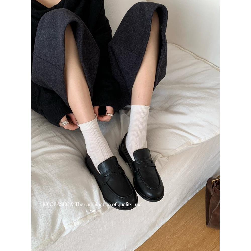 覆古平底乐福鞋女英伦风黑色通勤覆古单鞋百搭休闲一脚蹬小皮鞋子