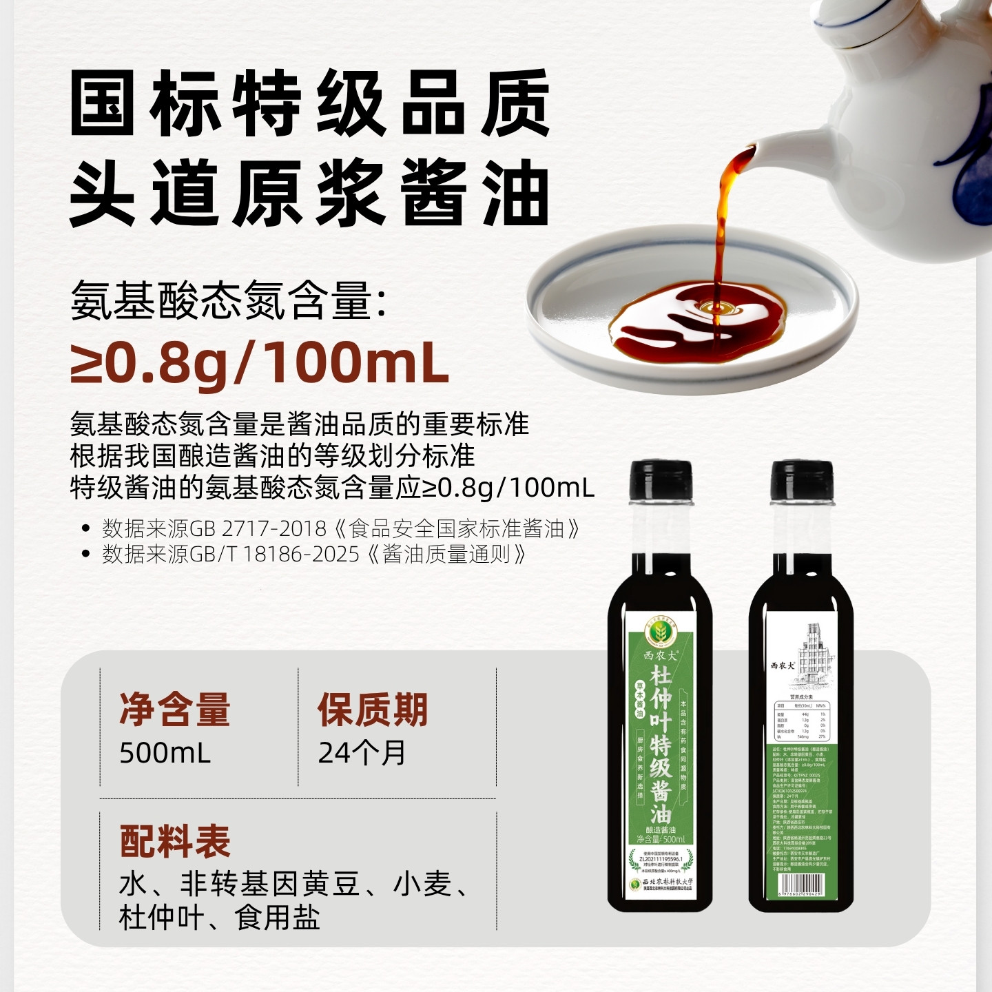 西农大杜仲叶特级酱油0添加生抽
