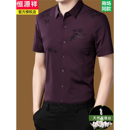 恒源祥高端桑蚕丝男士短袖衬衫夏季新款中年休闲冰丝半袖免烫衬衣