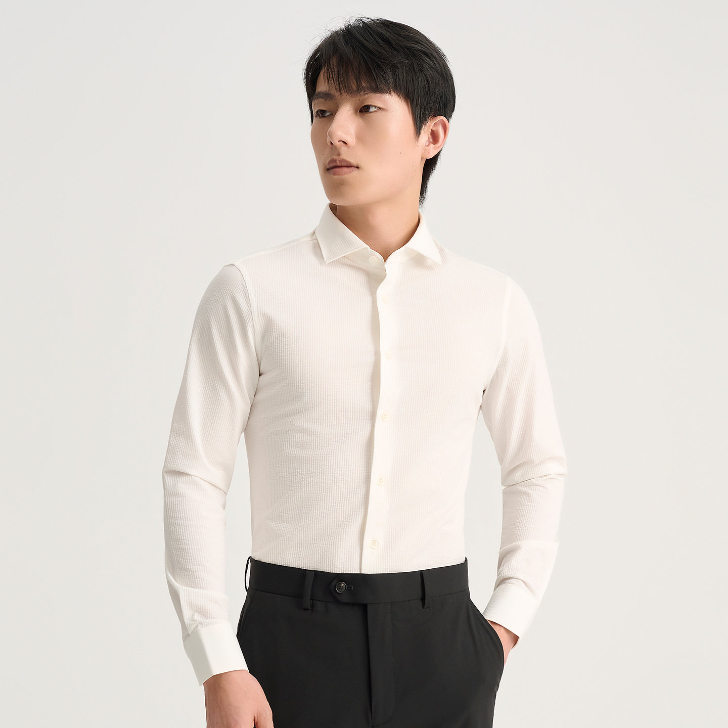 JODOLL乔顿长袖衬衫26年春商务修身条纹肌理温莎领易打理白衬衣男
