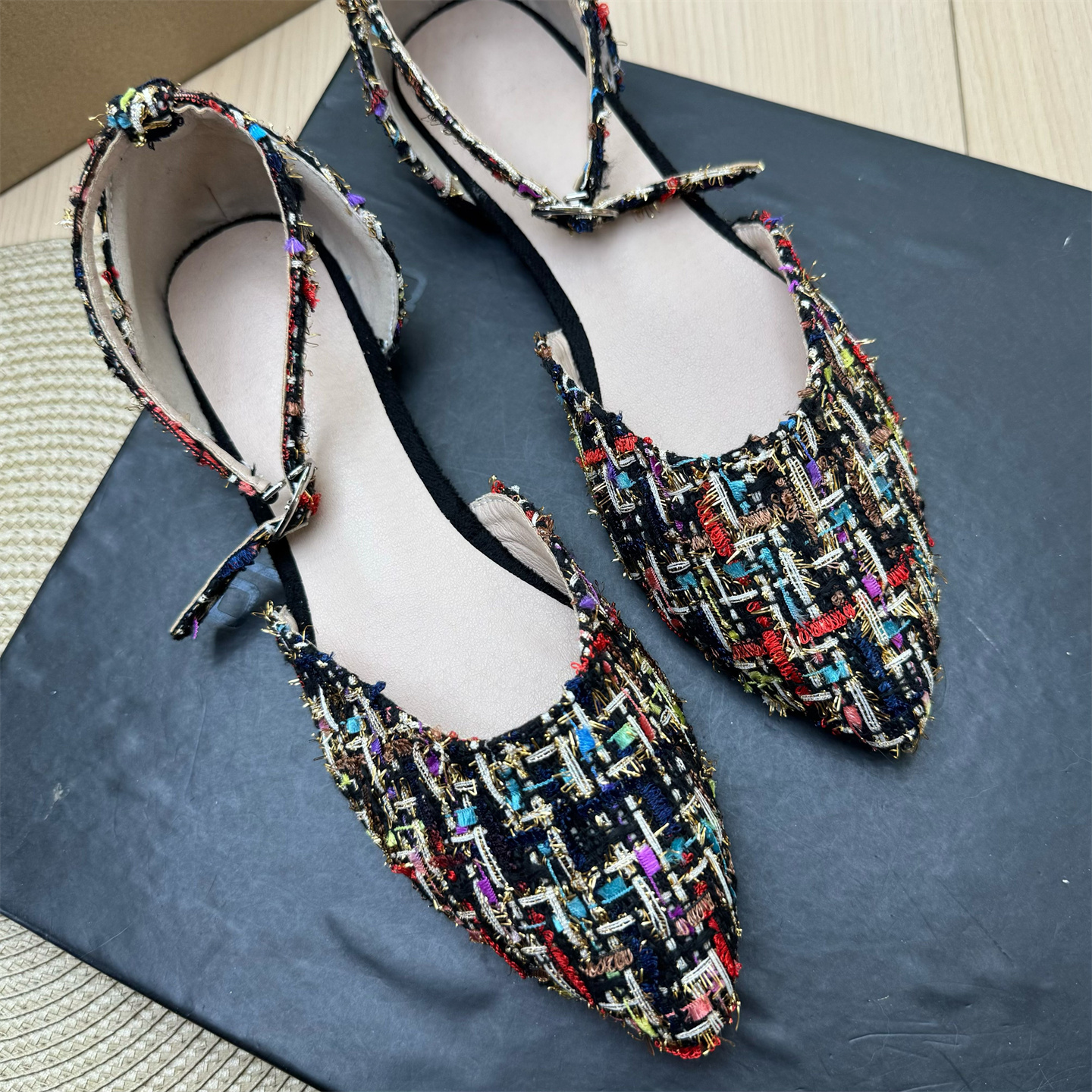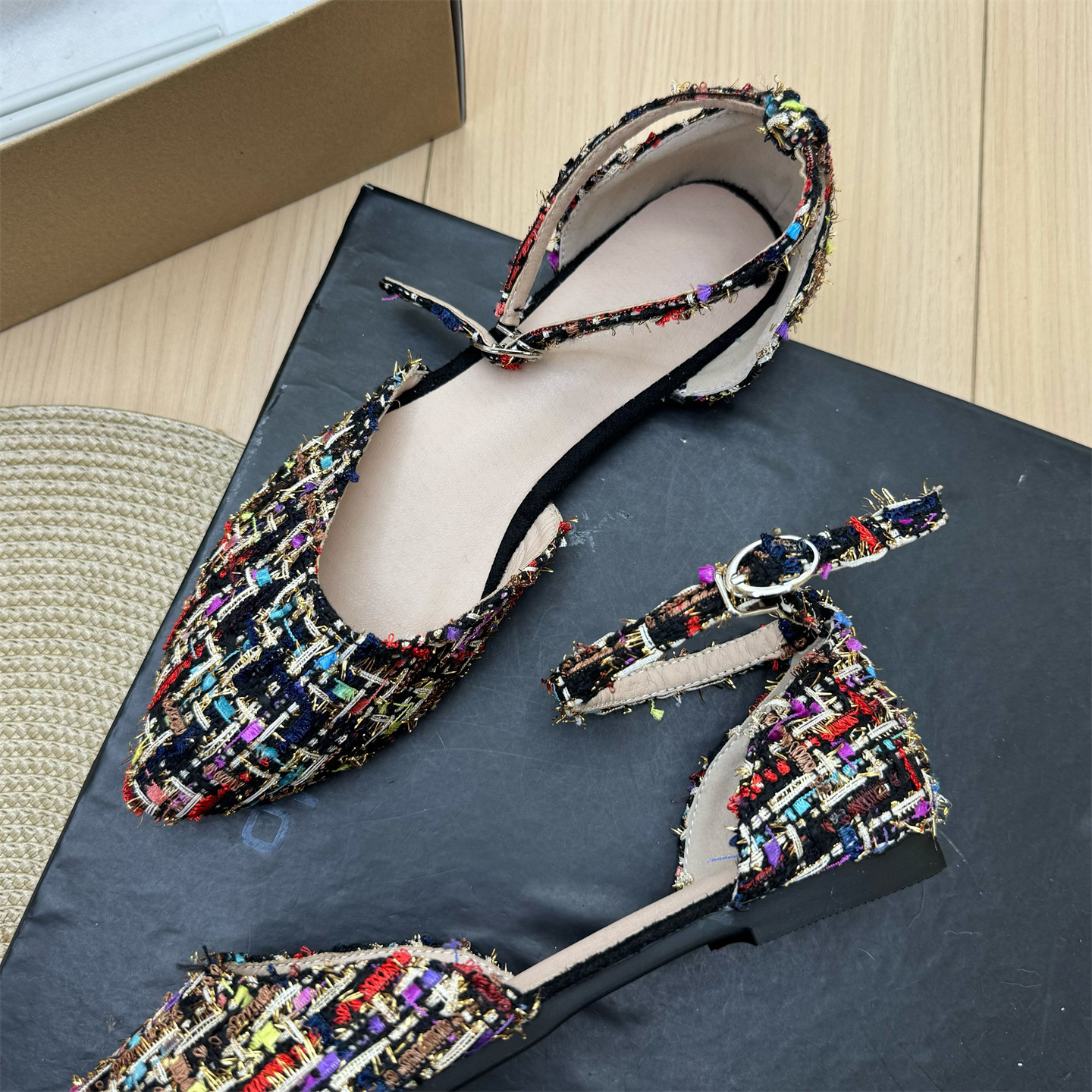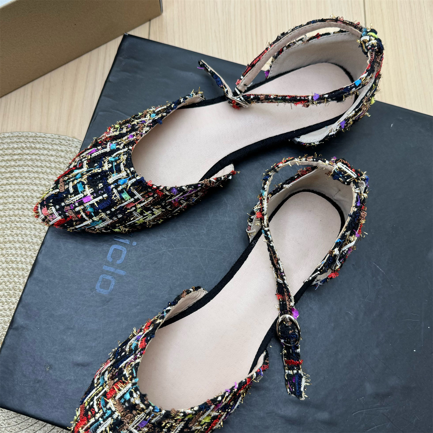 法式浅口拼色包头凉鞋仙女风2025春季新款中空尖头一字带平底鞋子