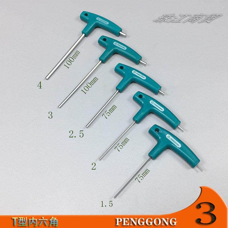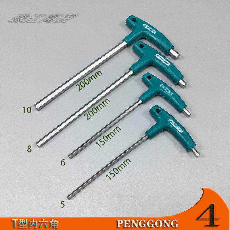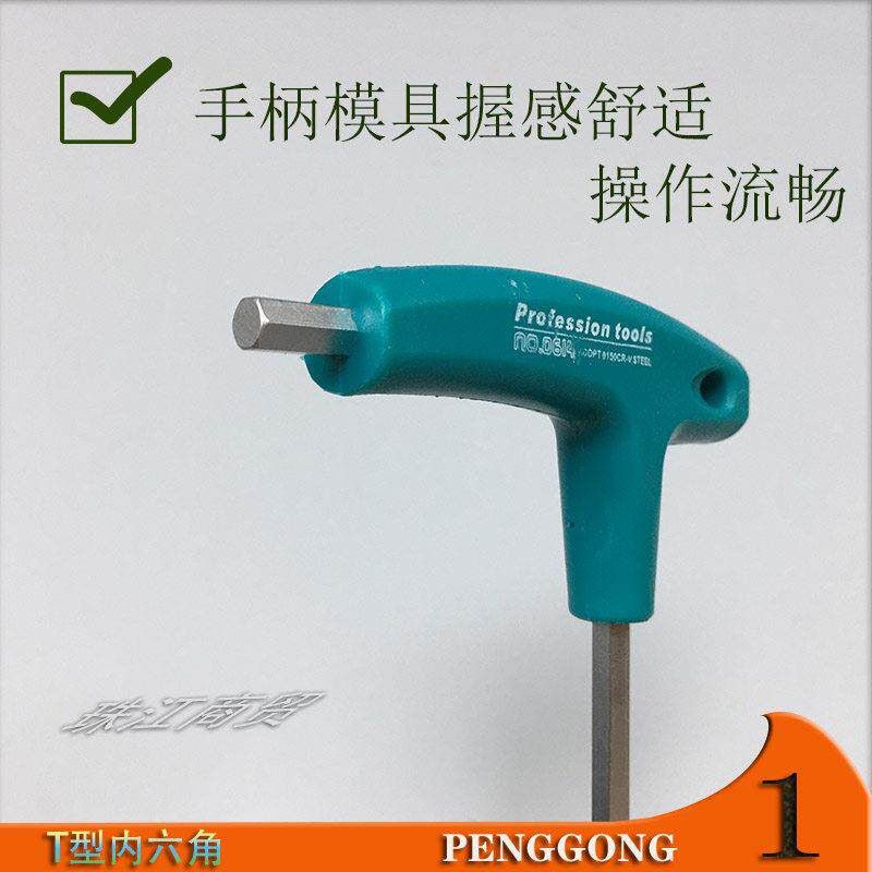 鹏工0614内六角扳手T型6/7/9件套装拐杖形带手把内六方扳手六楞棱