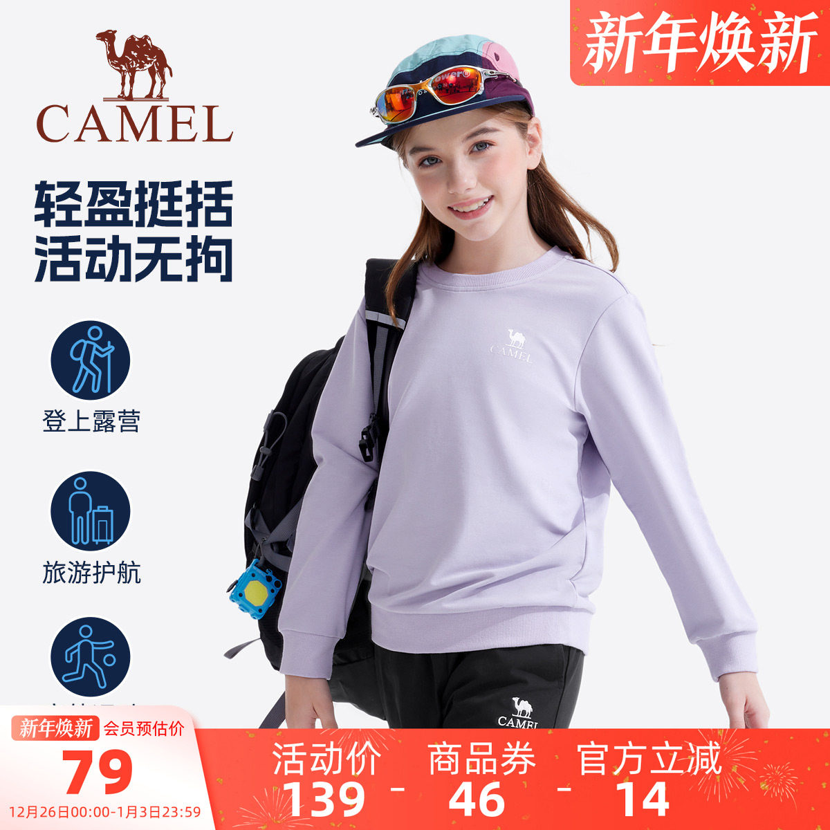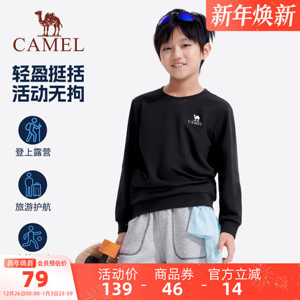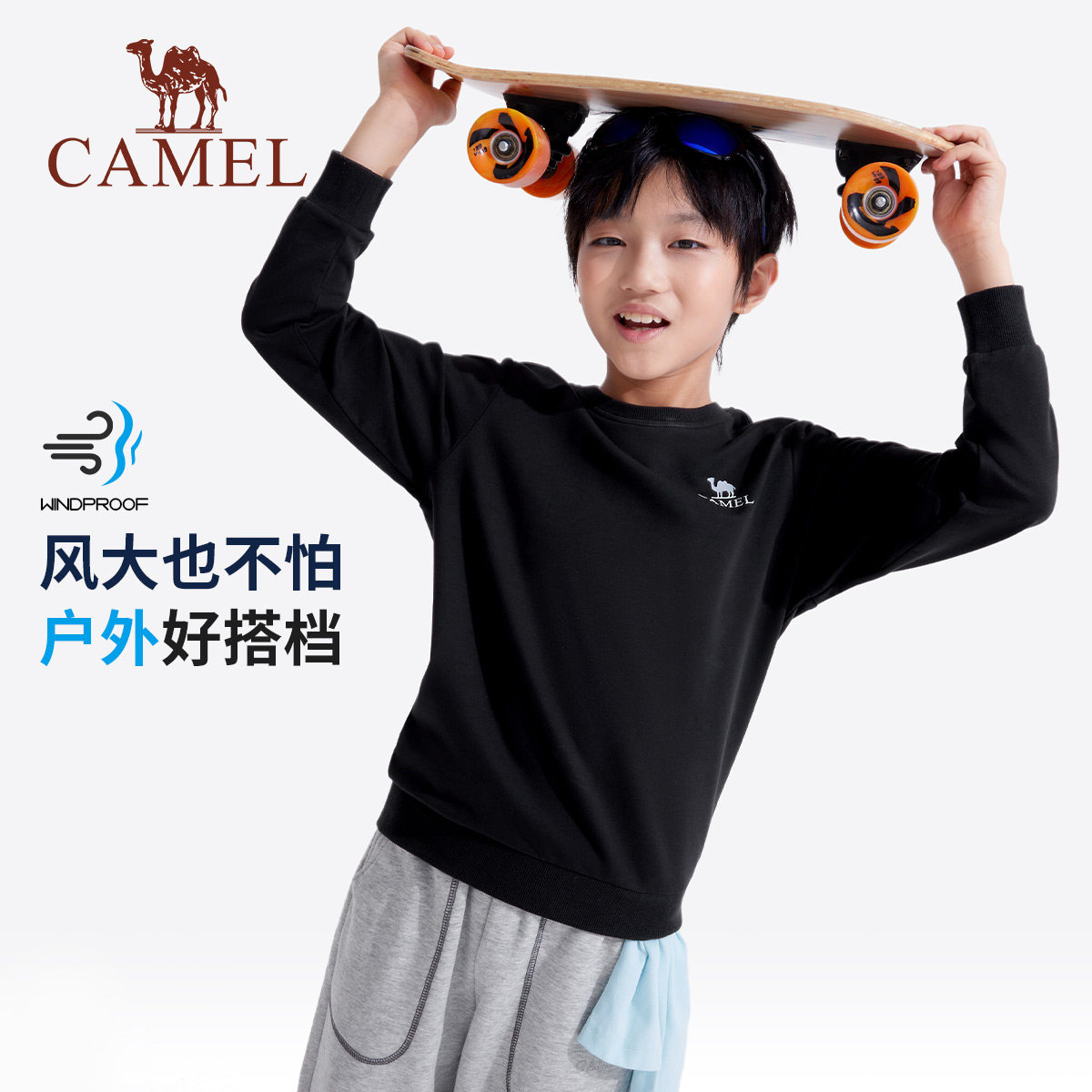 骆驼儿童长袖上衣2025新款简约舒适卫衣中大童保暖打底衫男童卫衣