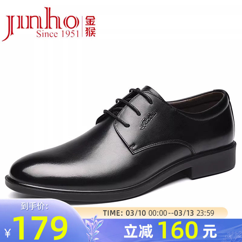 金猴商务正装男士皮鞋春季英伦男鞋透气结婚新郎鞋真皮德比工作鞋