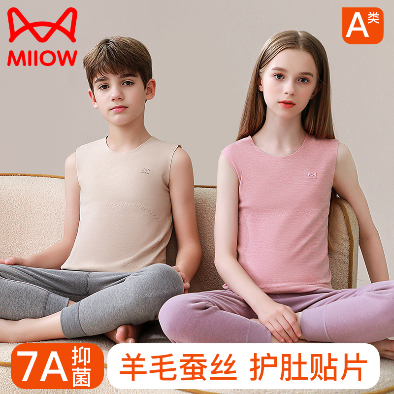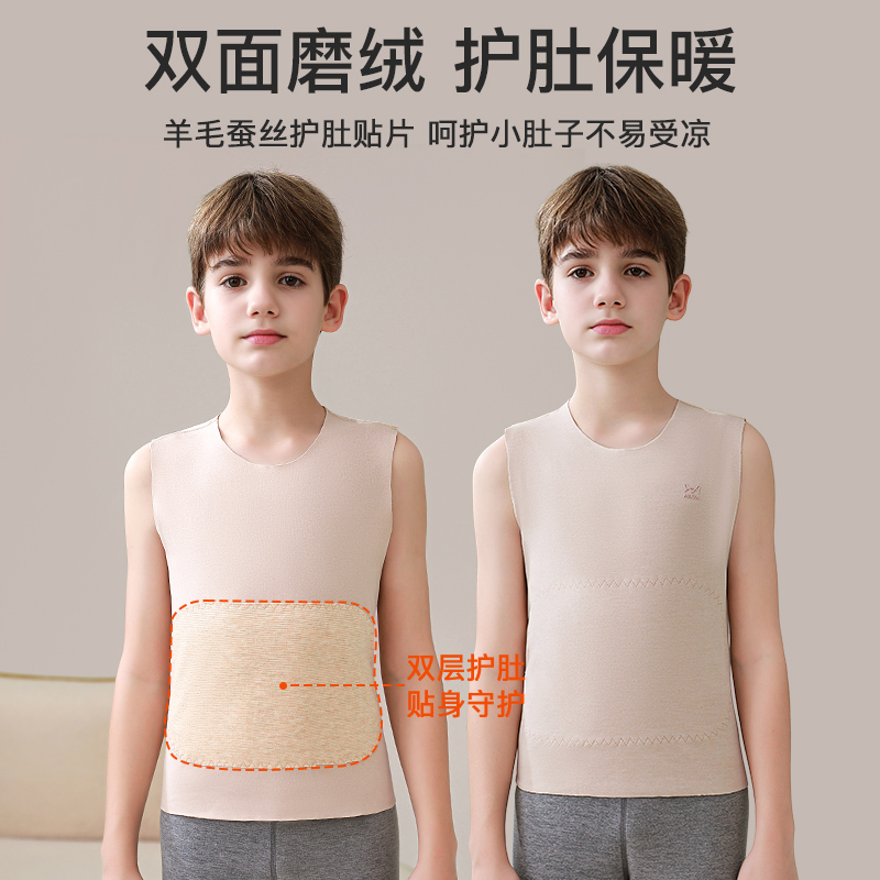 猫人儿童保暖背心男大童女孩秋冬绒德无痕打底马甲内衣羊毛桑蚕丝