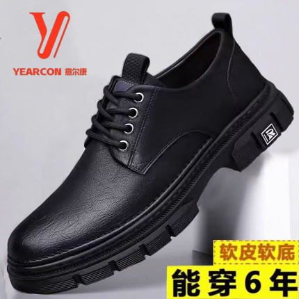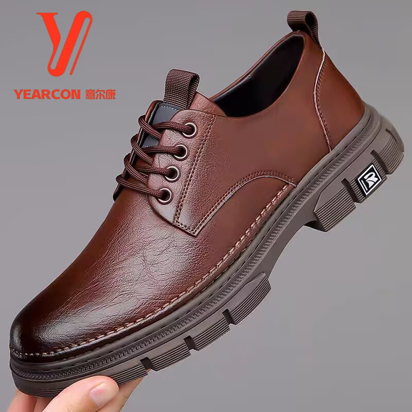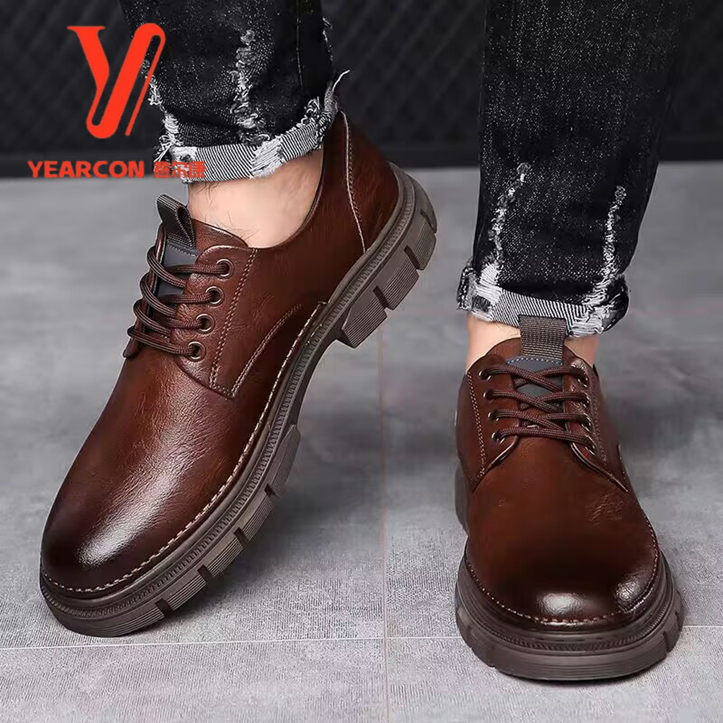 意尔康男鞋秋季新款工装鞋真皮透气男士厚底休闲皮鞋英伦男大头鞋