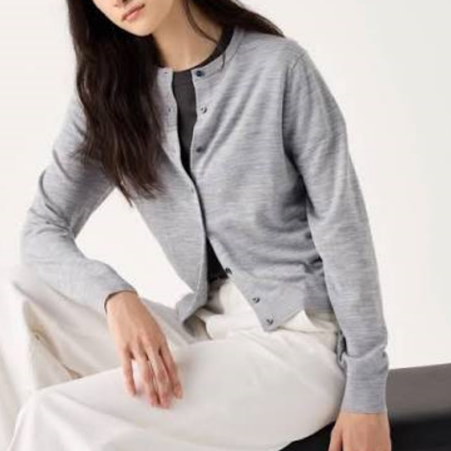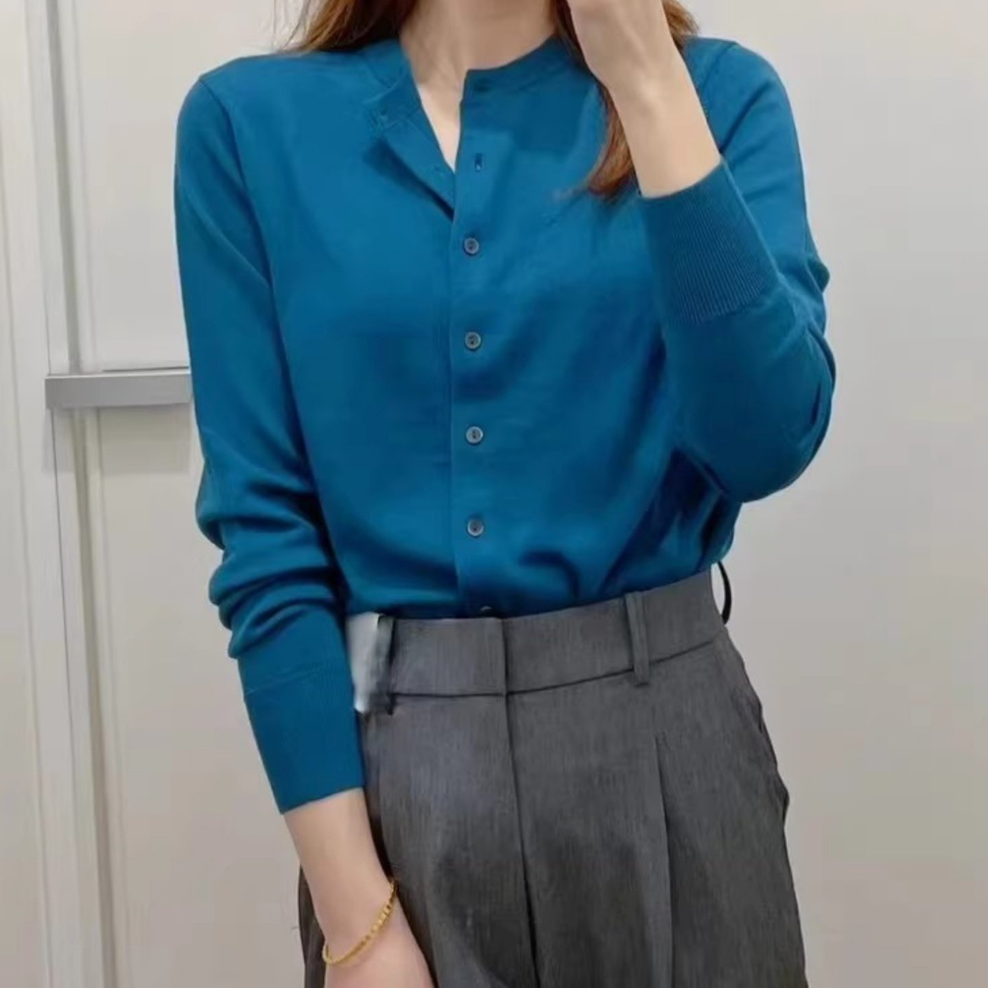 妞妞家春季新品女士TH简约圆领美利奴羊毛经典百搭针织开衫8662