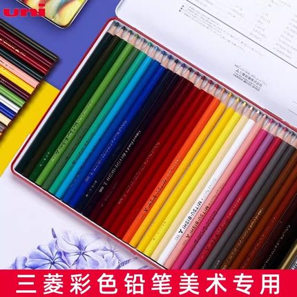 日本进口uni三菱铅笔油性彩色铅笔木杆绘画彩铅880画画专业12色学生专用铁盒套装开学季送礼礼物24色36色