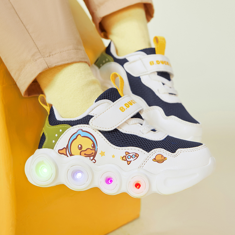 bduck小黄鸭童鞋儿童发光鞋春秋男童运动鞋防滑透气中小童休闲鞋