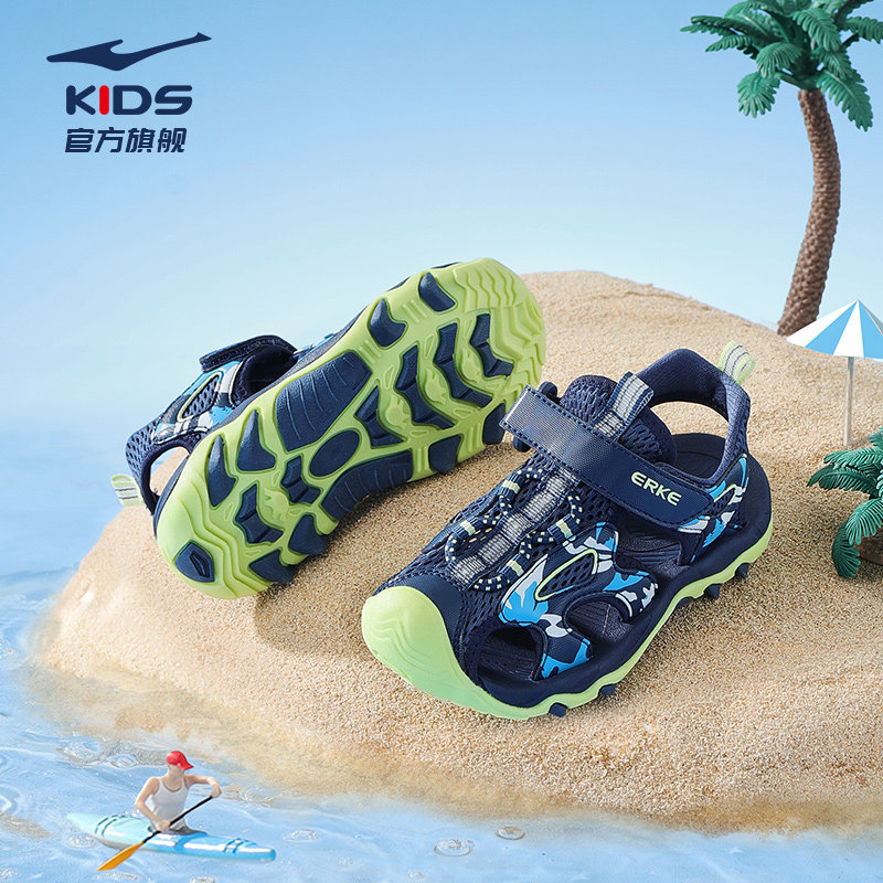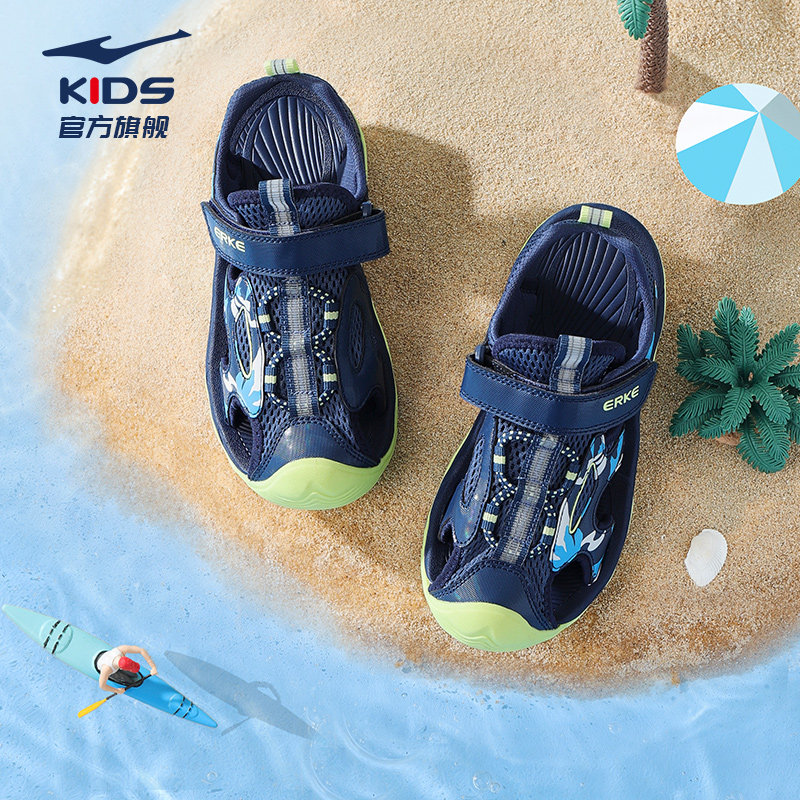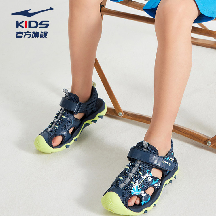 鸿星尔克儿童凉鞋男童2026夏季新款网面透气包头中大童鞋子沙滩鞋