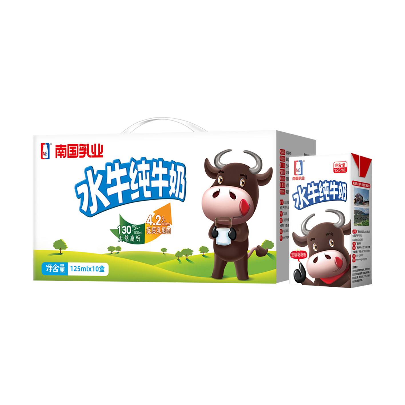 【新品】广西水牛纯牛奶125ml*10盒 儿童学生 高钙全脂早餐牛奶