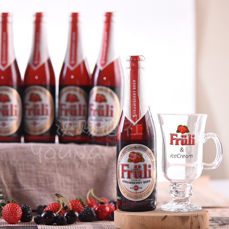 现货整箱比利时原装进口芙力草莓啤酒水果味女士甜酒330ml*24瓶