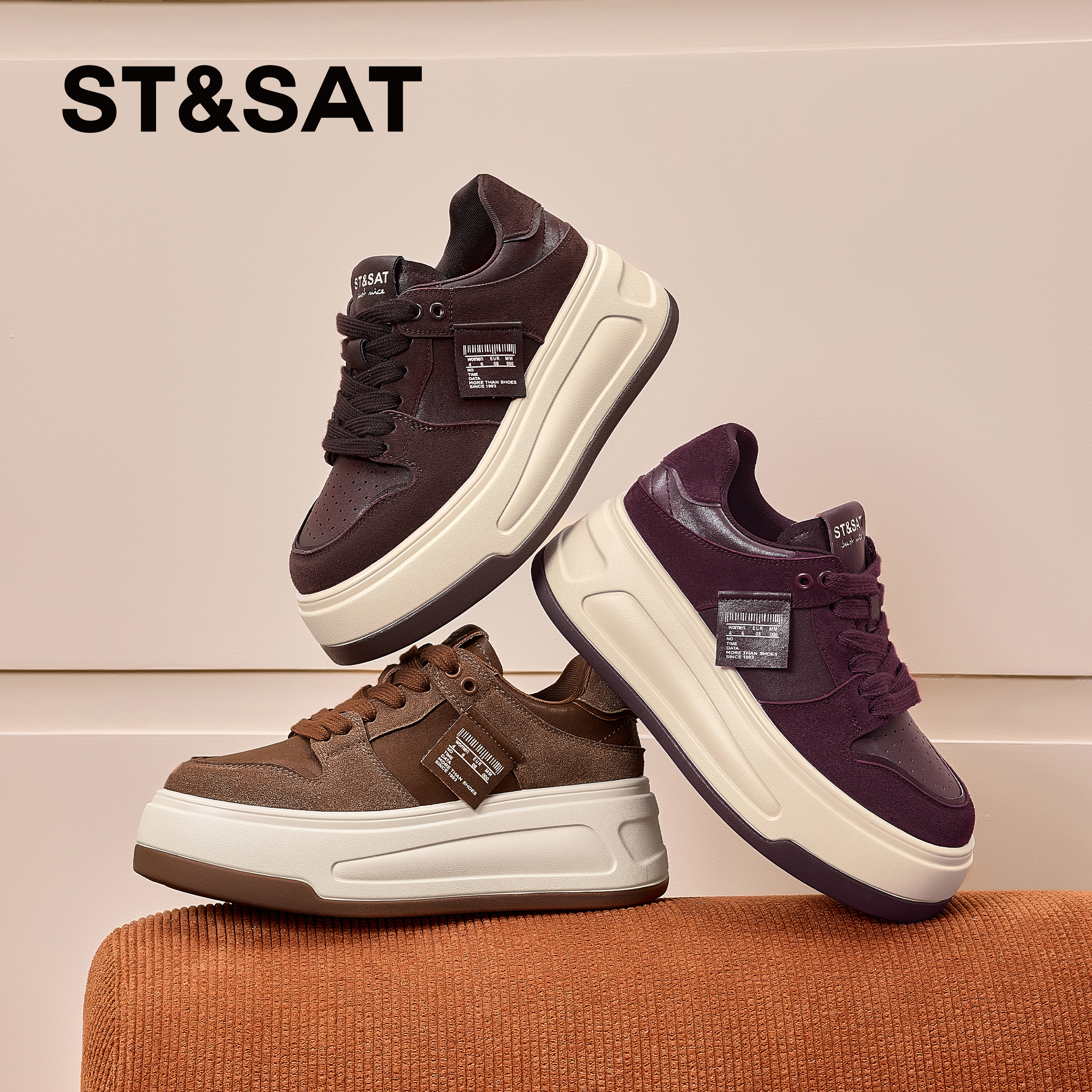星期六女鞋松糕厚底增高休闲鞋复古2025新款秋季百搭舒适休闲板鞋