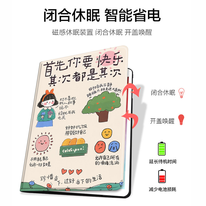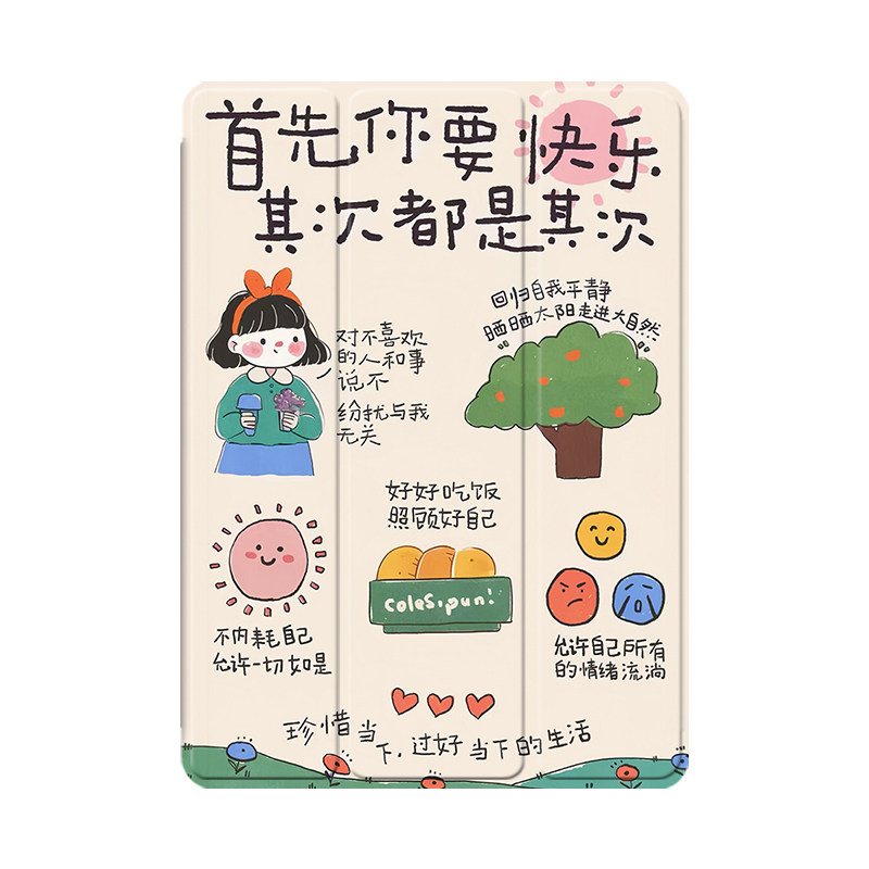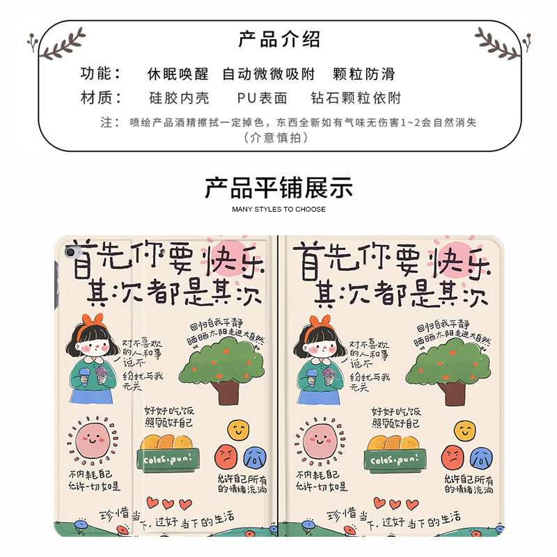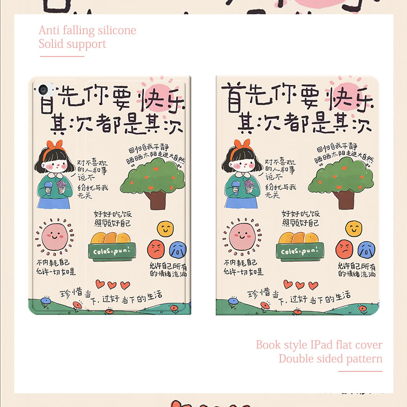 快乐卡通女孩2021/20/19新款ipad适用air4/3/2气囊保护套10.2/9.7寸平板2018笔槽pro11三折mini4/5苹果123壳6