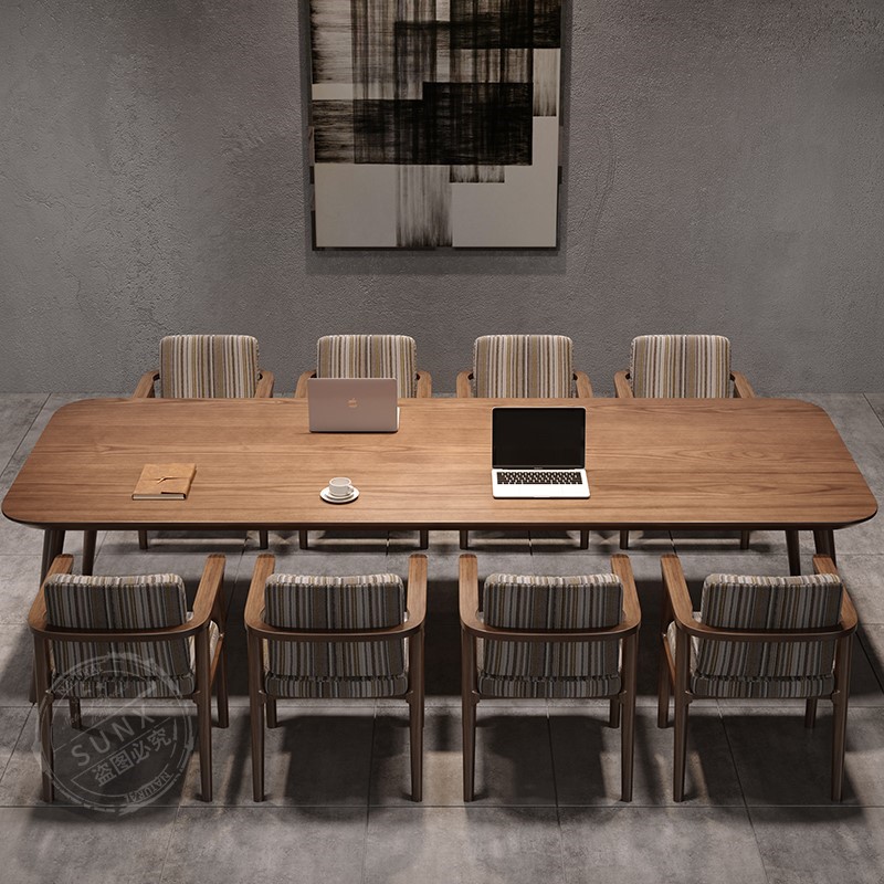 简易实木会议桌长方形工作台x商用大板木桌子长条桌简约现代办公