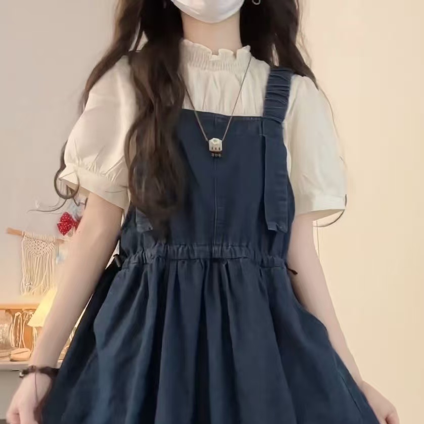 品牌女童牛仔背带裙套装夏季2025新款女大童夏裙子韩系长裙夏装连