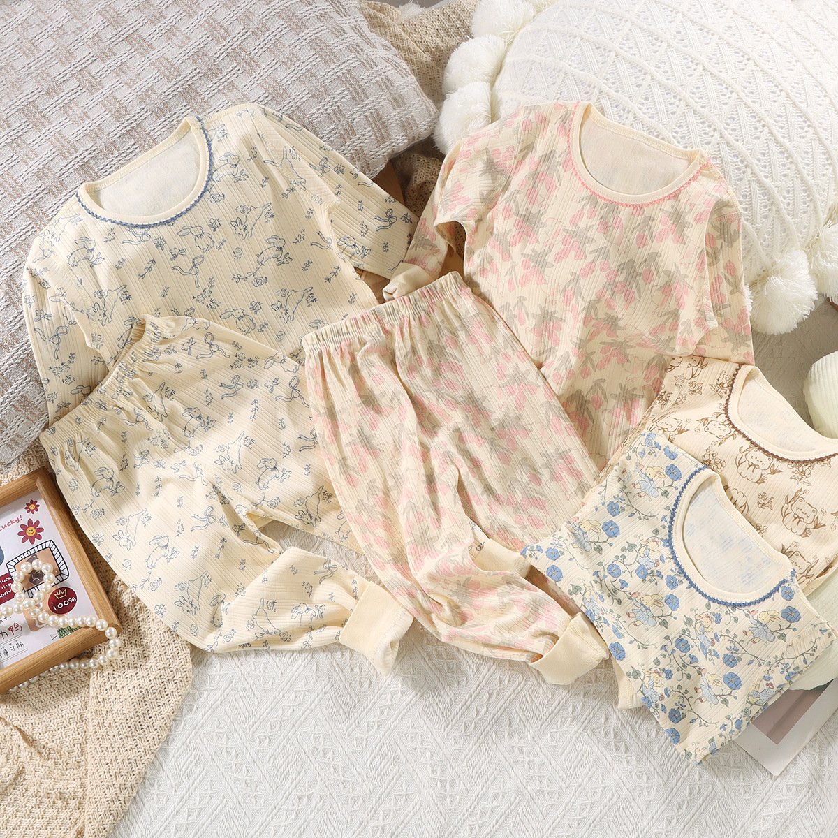 儿童无骨秋衣秋裤套装可爱卡通秋冬季纯棉睡衣宝宝韩版内衣