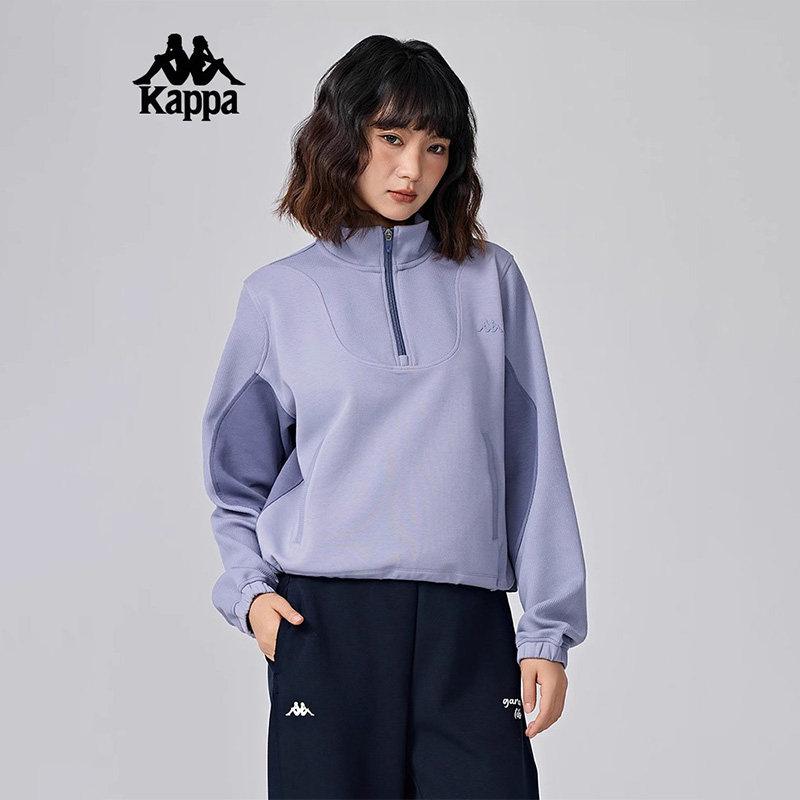 Kappa卡帕女装冬季新款半拉链针织长袖套头衫K0E82WT40