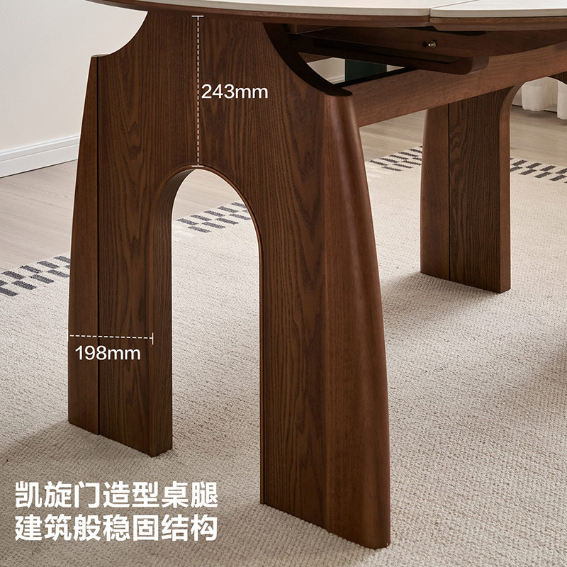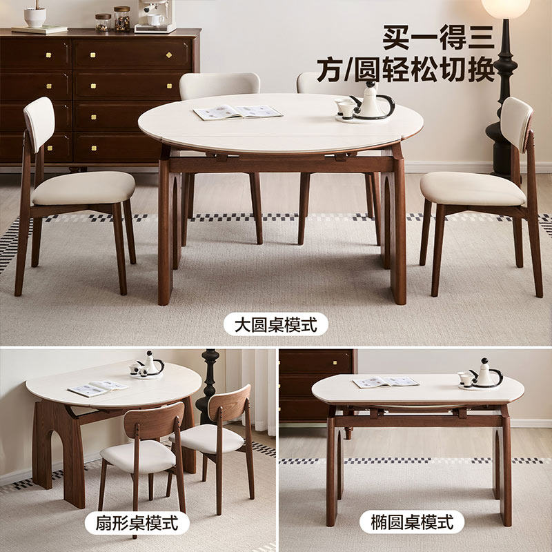 全友家居中古风复古洞石岩板餐桌可折叠变圆多功能客厅家用饭桌