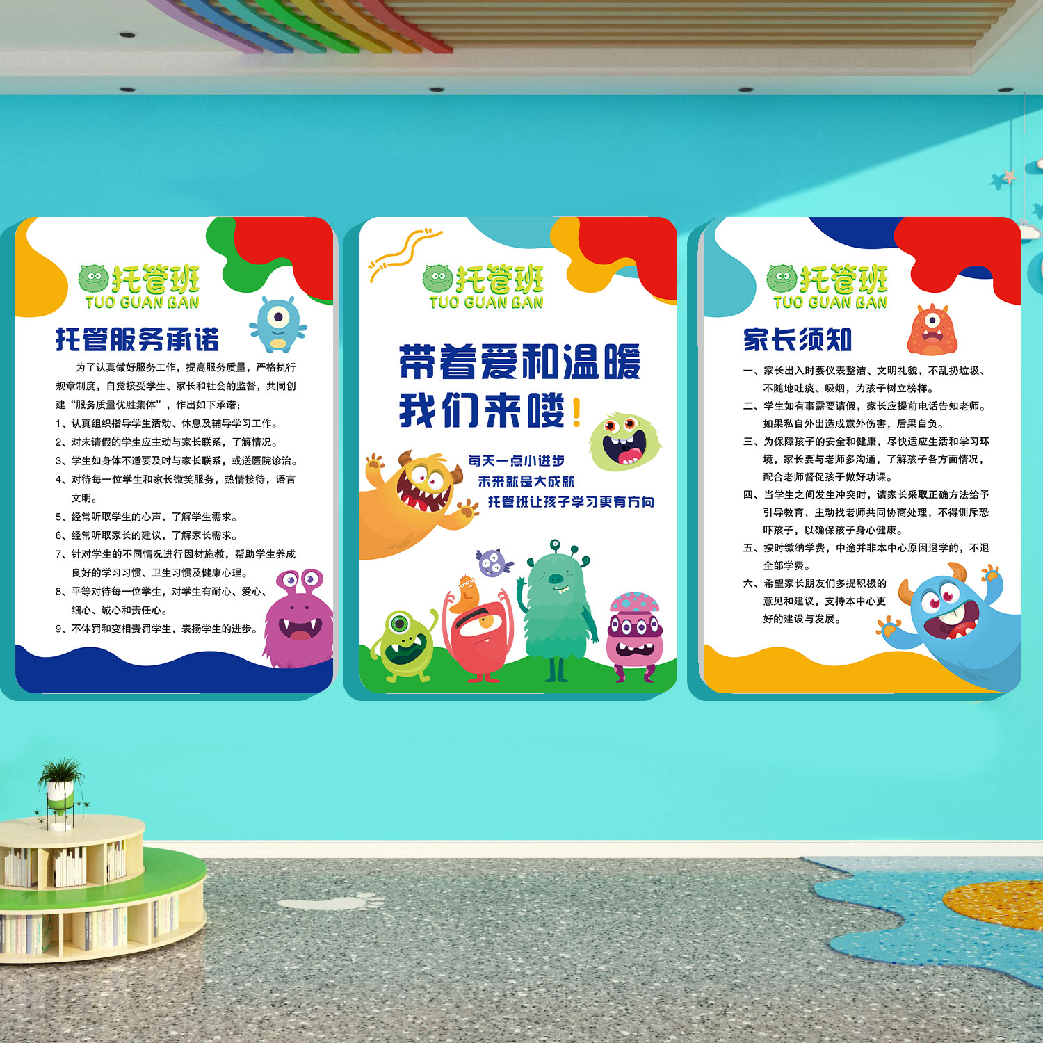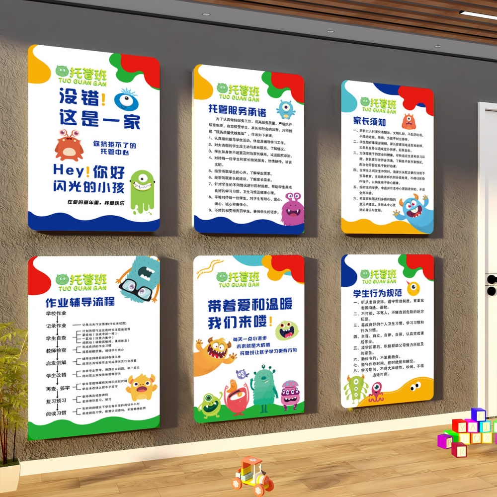 托管班管理制度广告牌开学教室布置装饰幼儿园培训机构文化墙贴QT