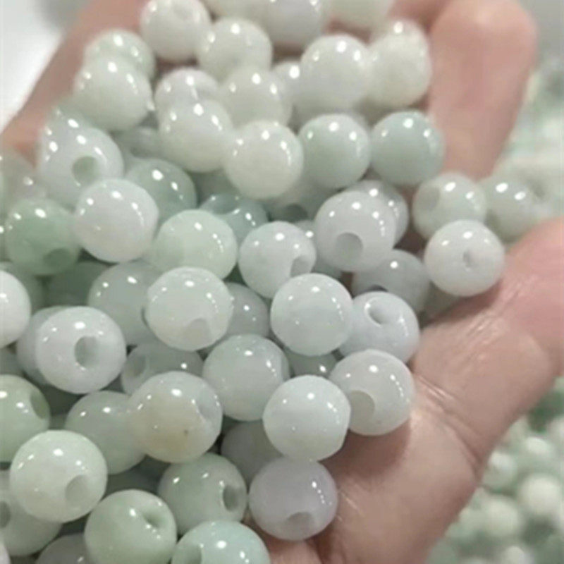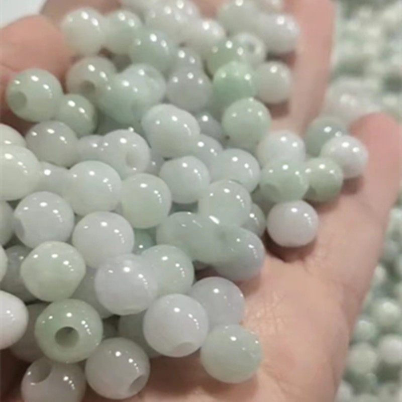 天然缅甸翡翠散珠大孔圆珠冰种diy4mm大孔径大洞单珠子手链尾珠