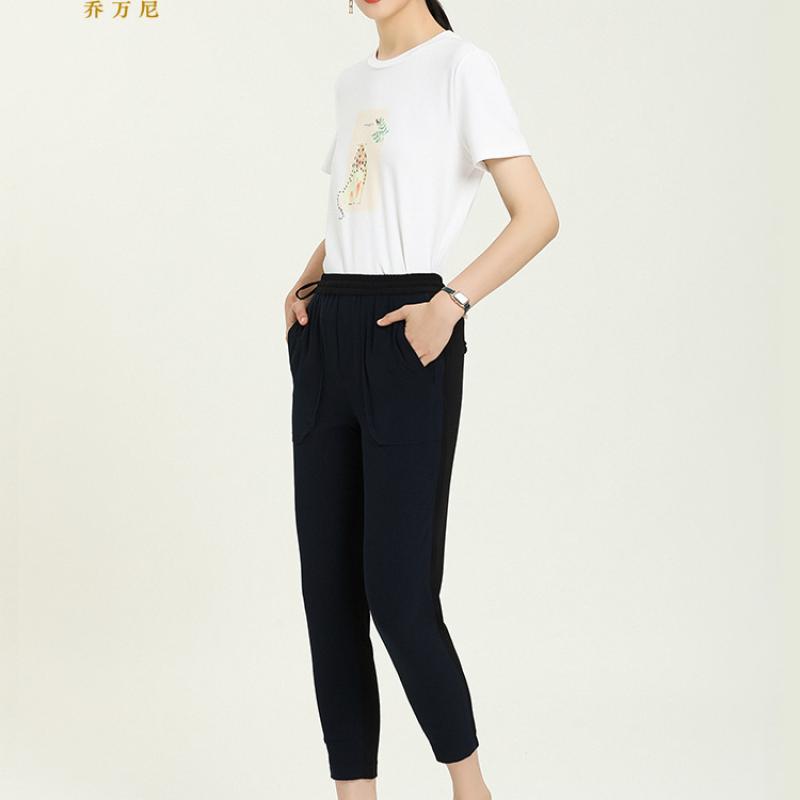 乔万尼专柜同款运动休闲风长裤舒适收口系带休闲裤显瘦显高裤子